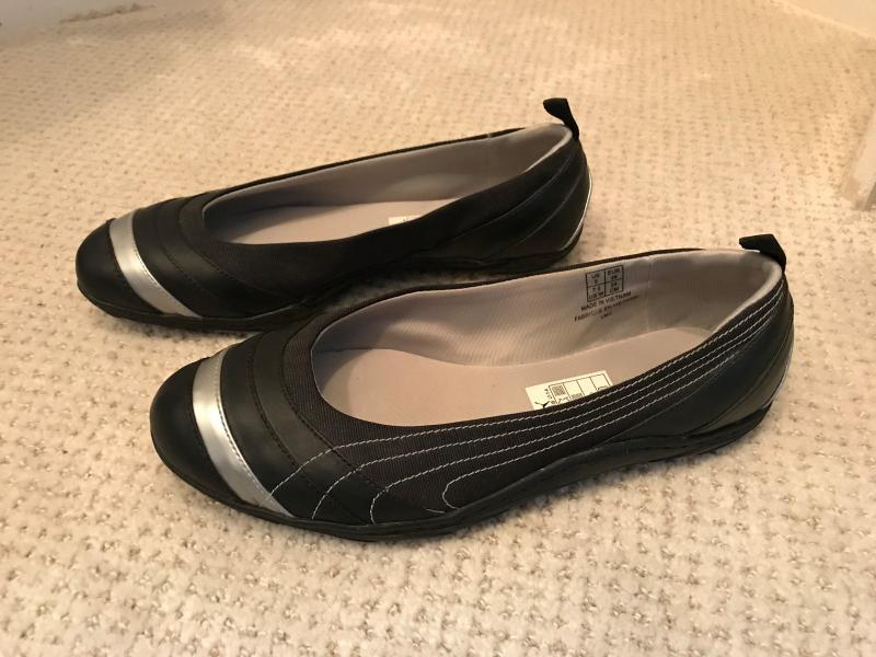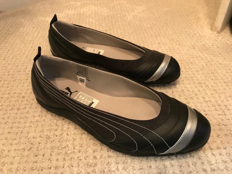 Size 7 1/2 Black and silver leather and canvas. Great condition