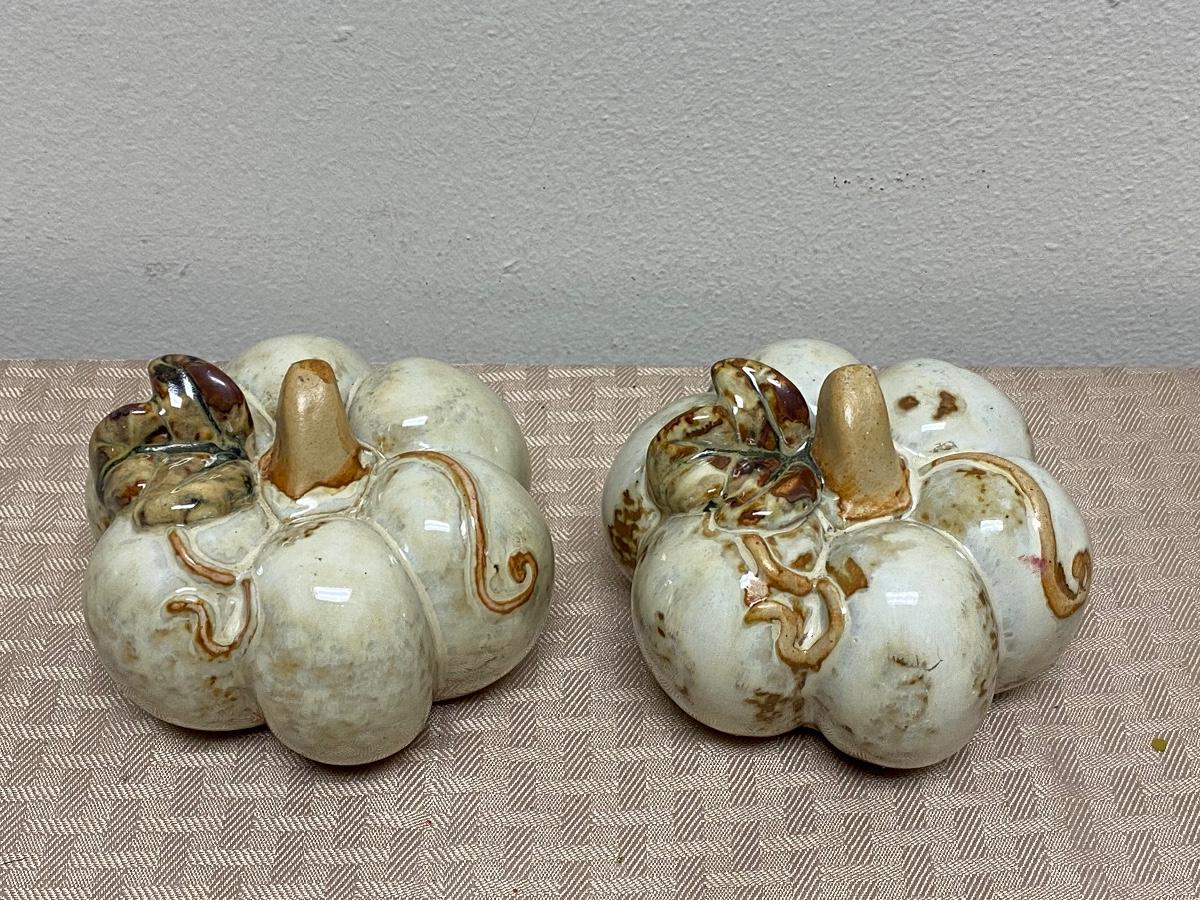 Pair of Ceramic Fall Thanksgiving Autumn Pumpkin Figurines