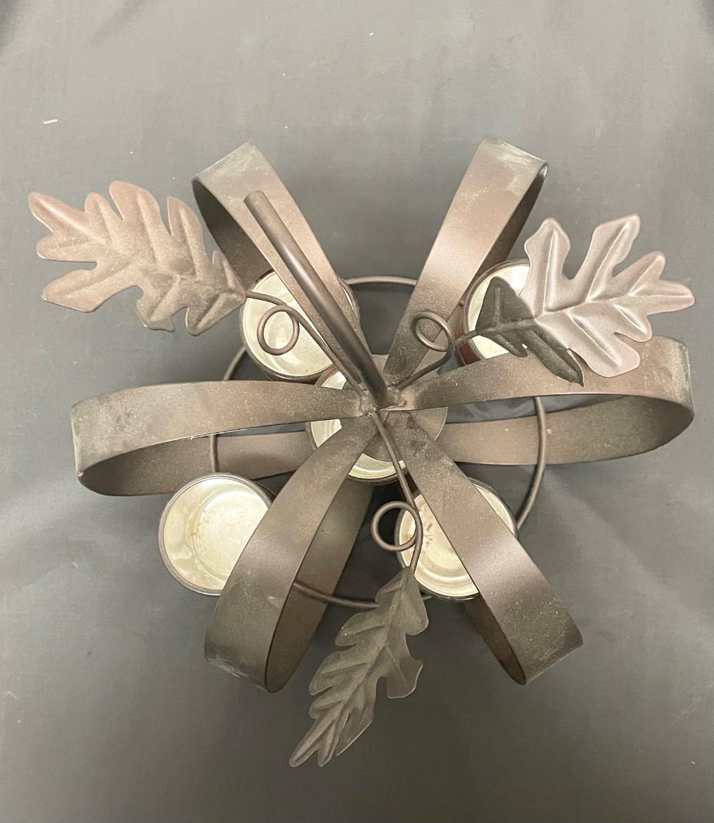 This decoration is in great condition. It has five different holders to put small candles inside of. The item is a bit dusty due to years of ownership. It is approximately 9” tall.