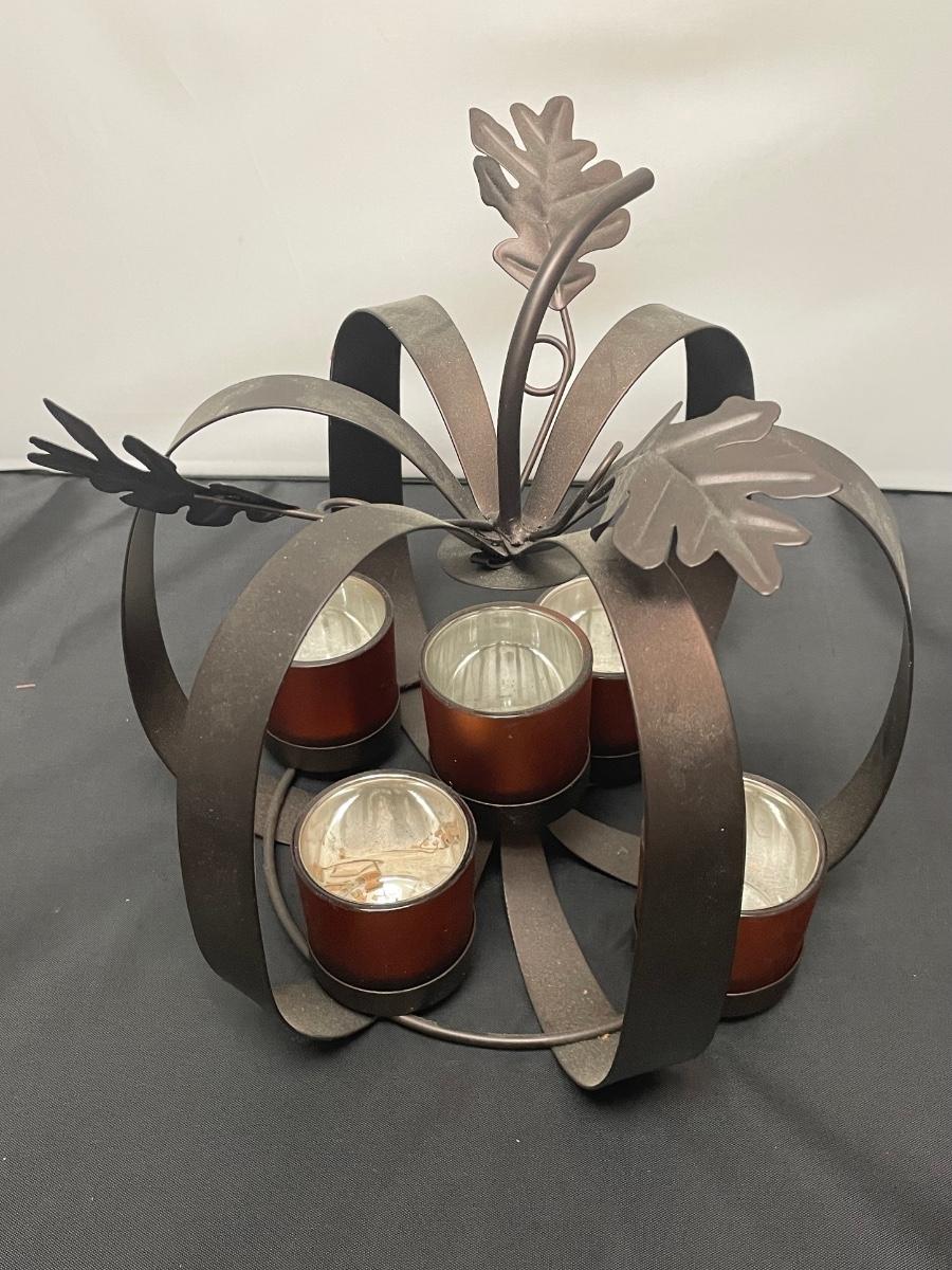Metal Pumpkin Candle Holder Centerpiece Thanksgiving Fall Holiday Decor