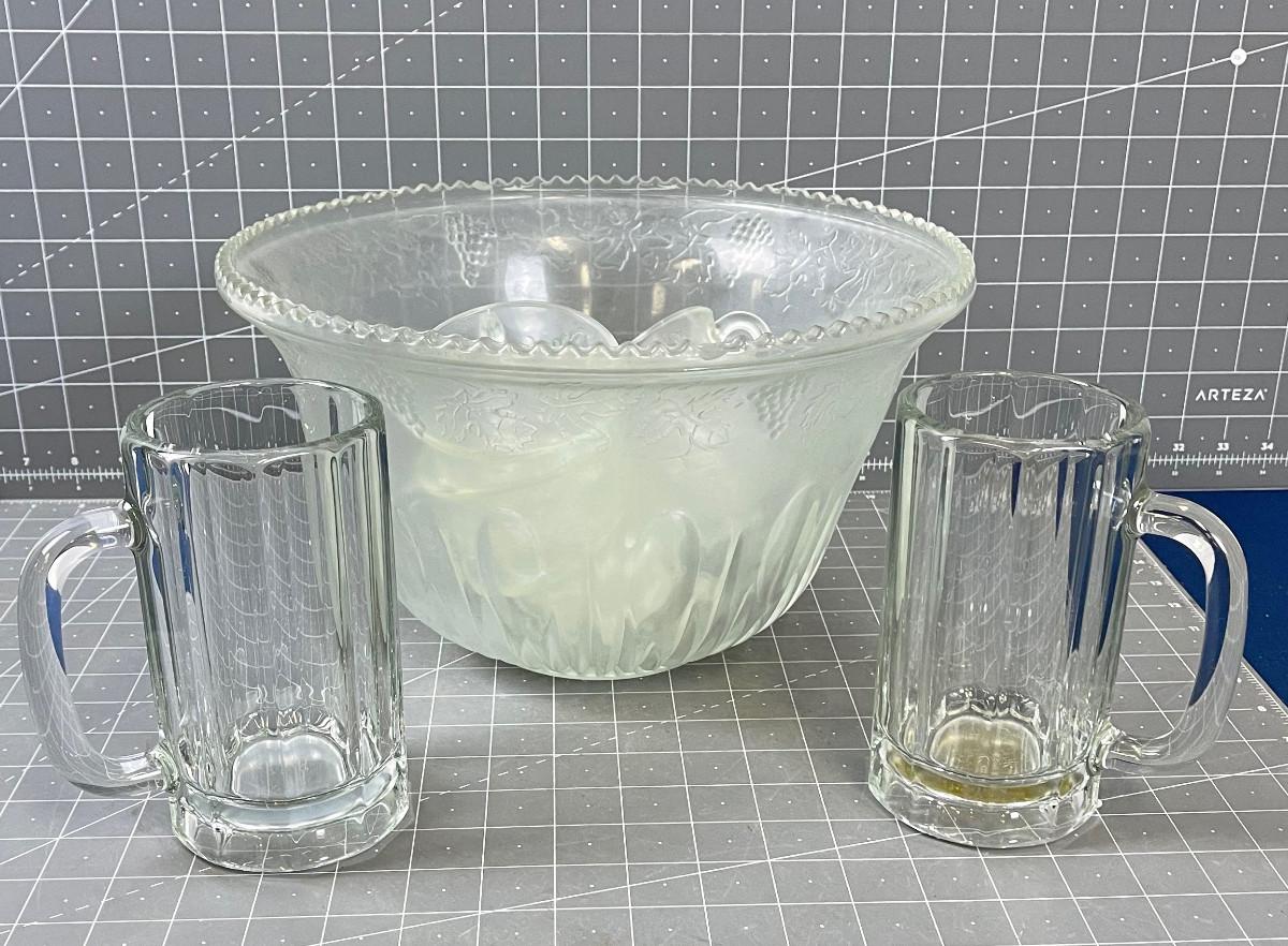 Punch Bowl and 2 beer Steins