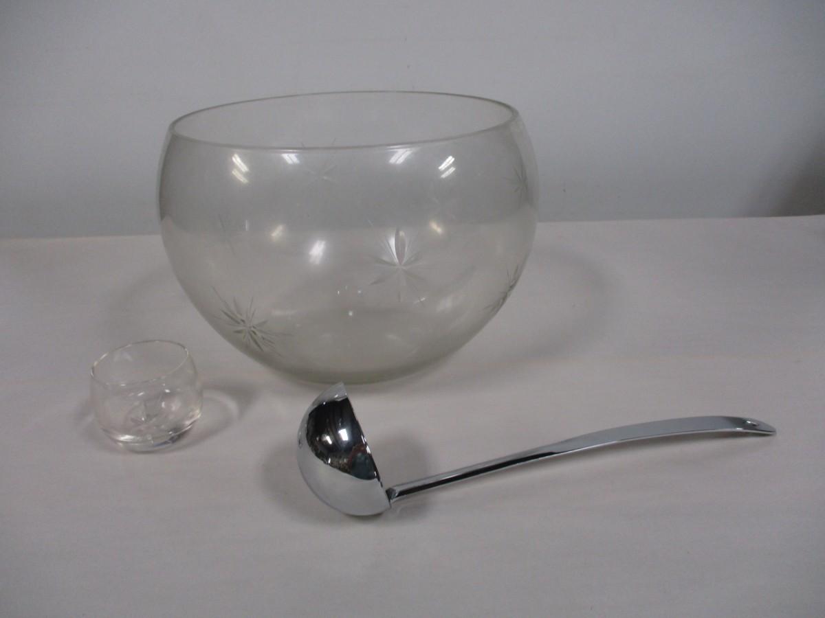 Vintage Punch Bowl With Glasses Star Design 25 Glasses