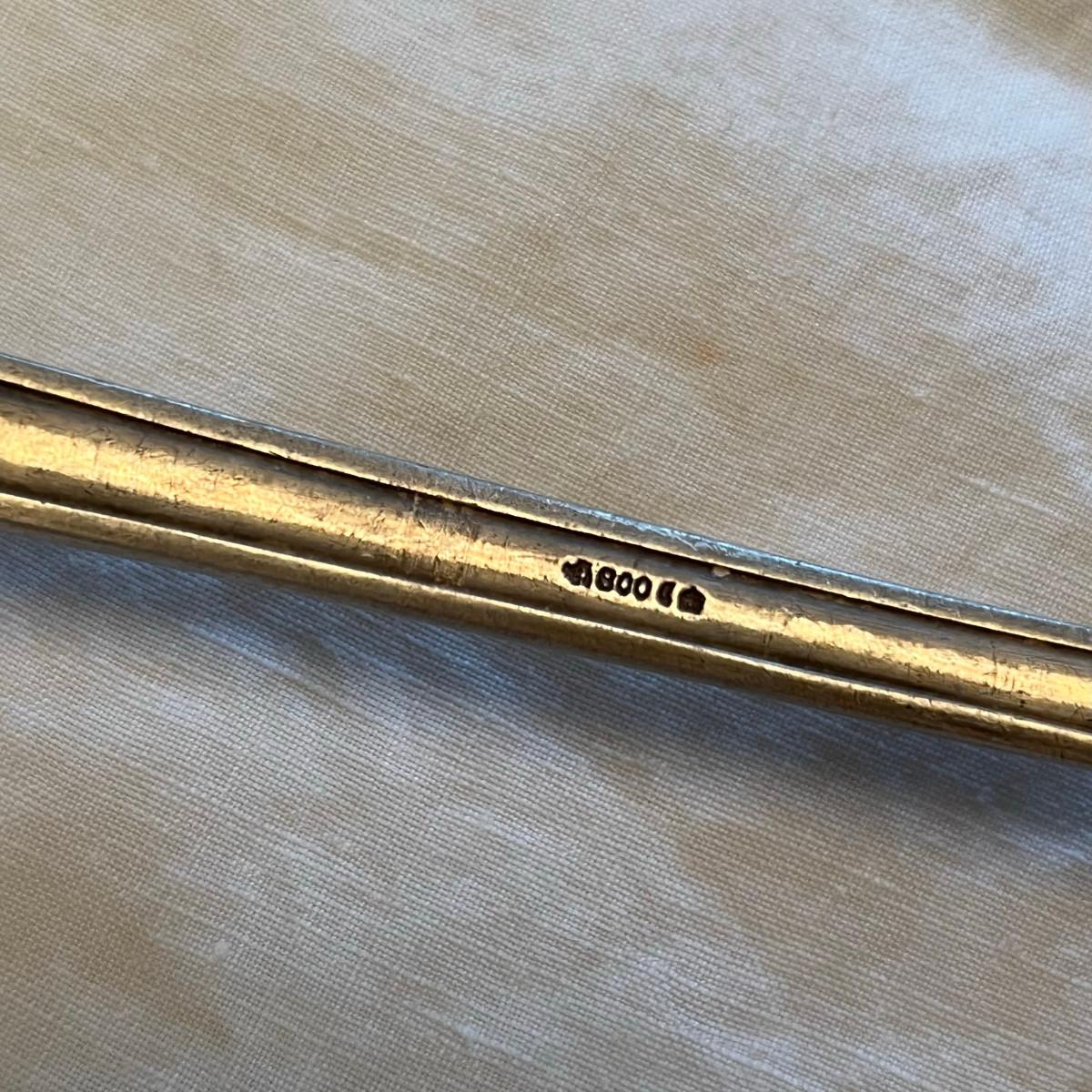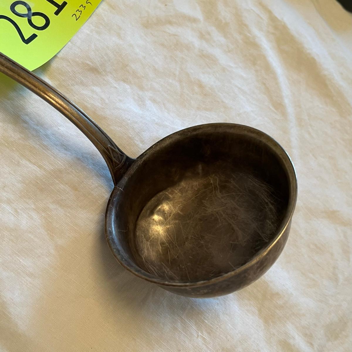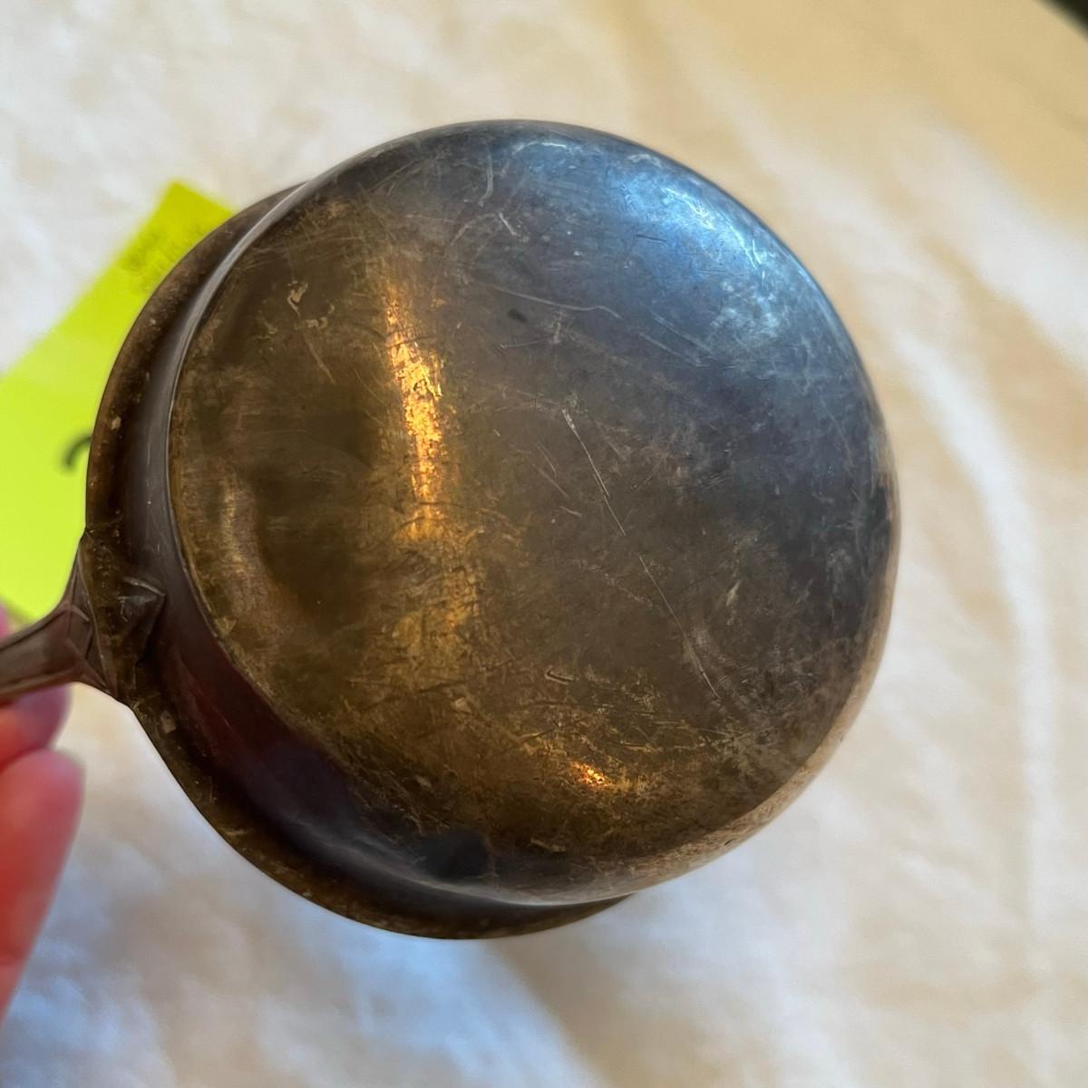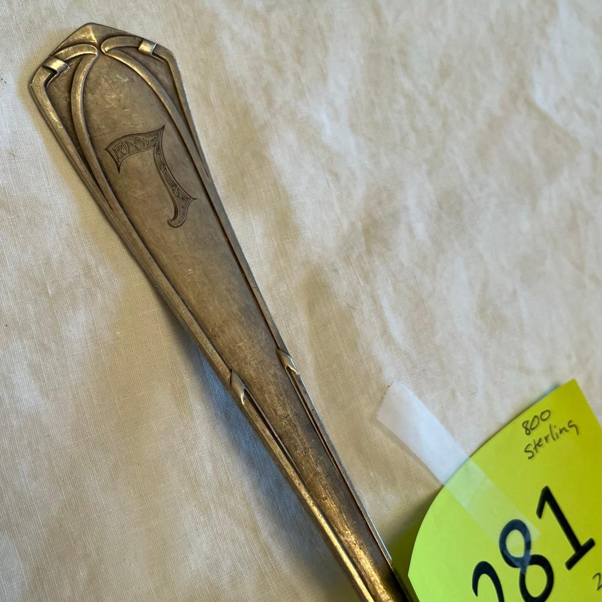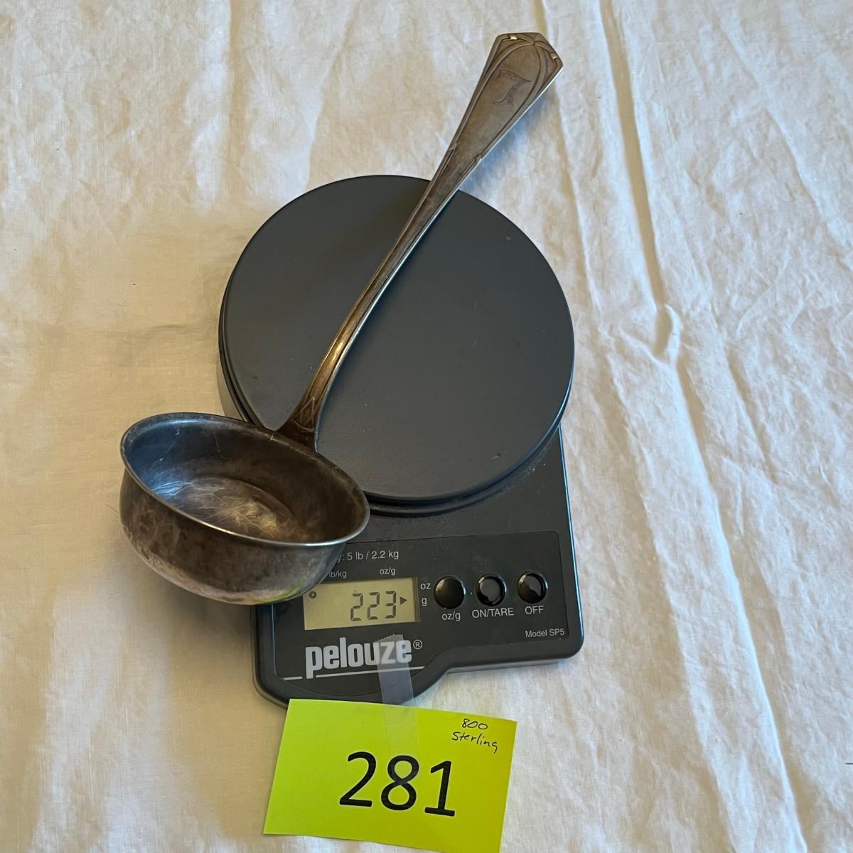 Monogrammed L. The bowl has some damage. 800 European silver. I had a hard time getting this to fit on the scale, so 223 grams maybe a bit light yet.