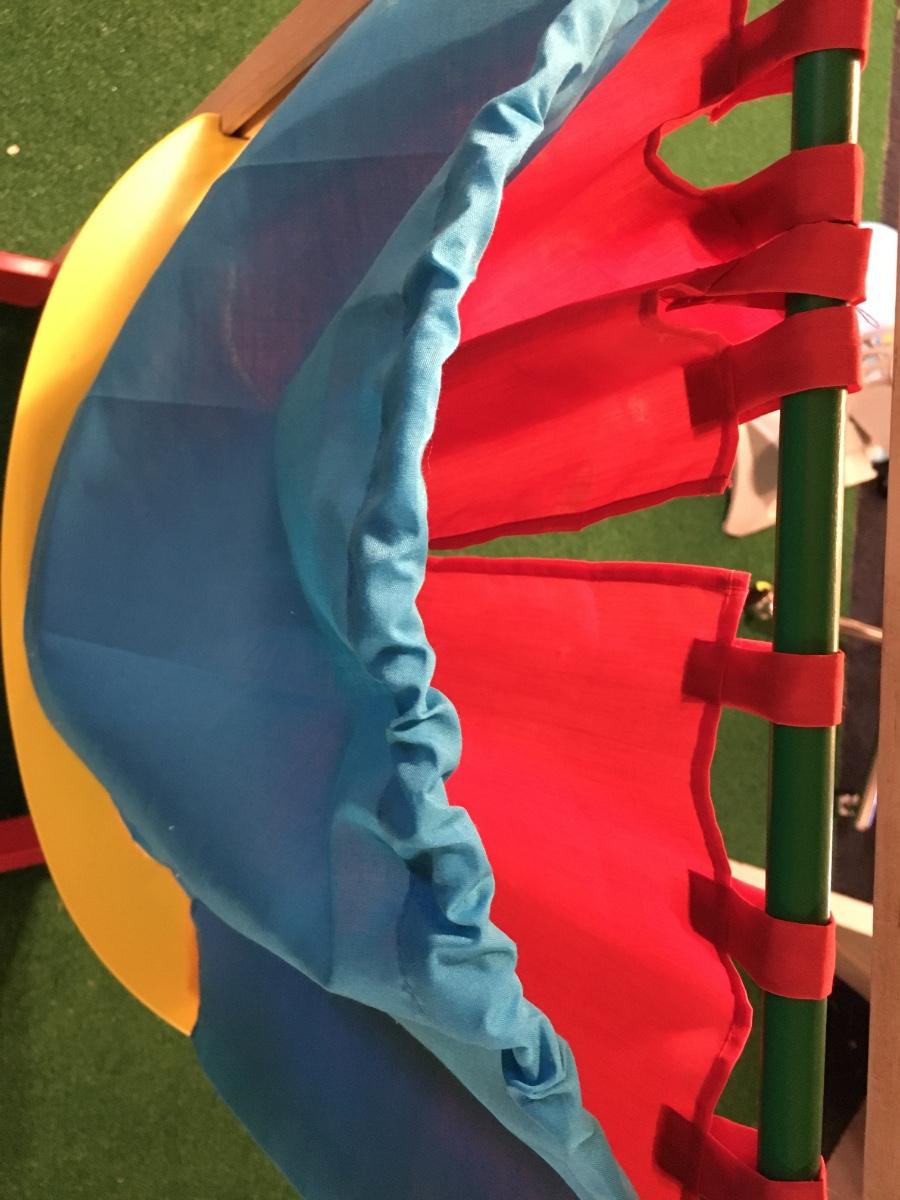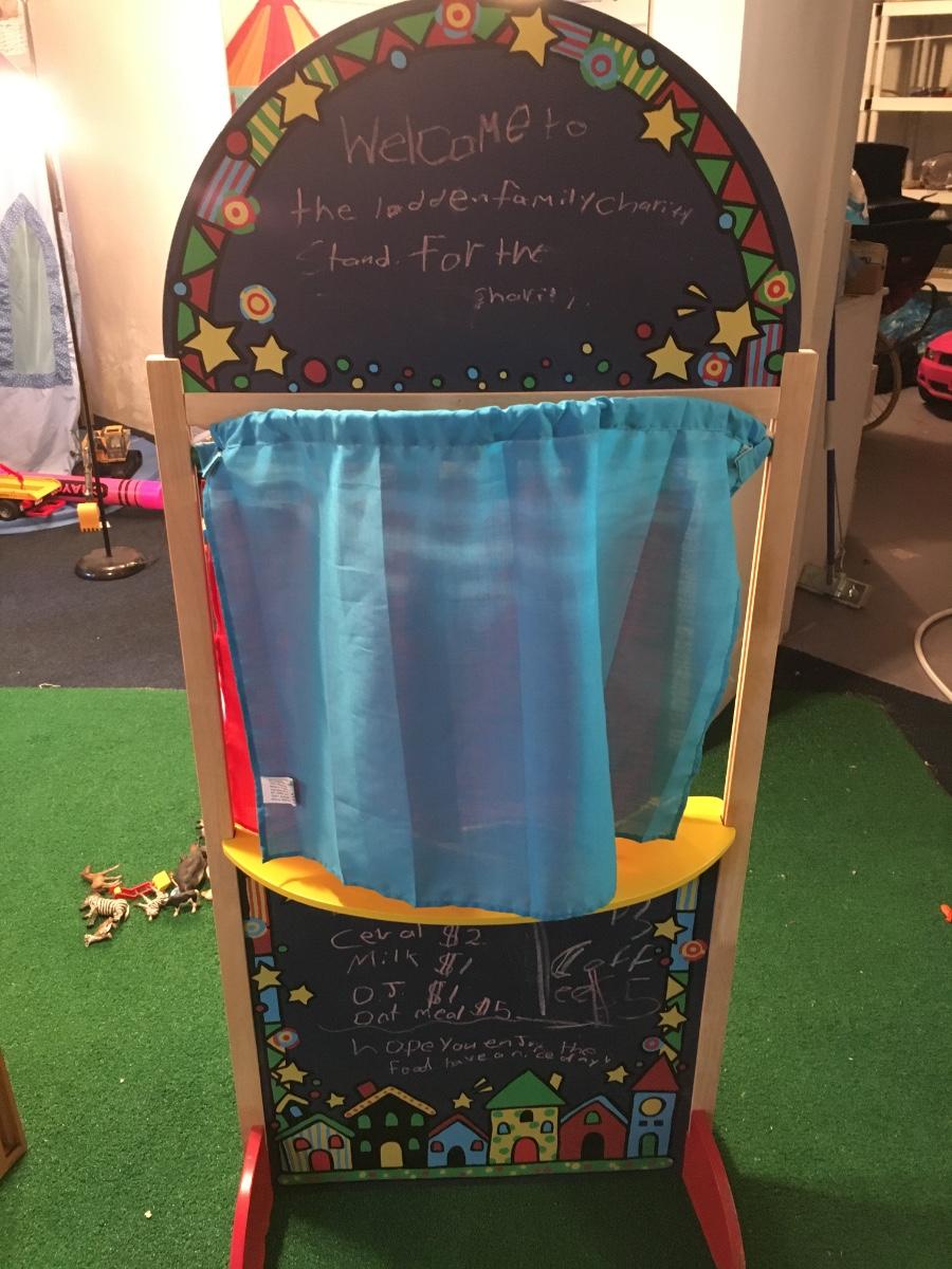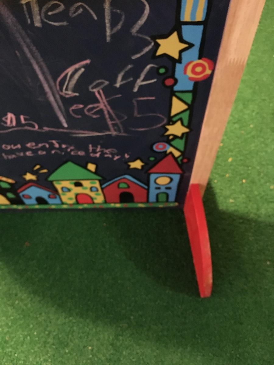 Standing puppet theater has chalk boards on top and on bottom to let your audience know what will be performed! One leg needs to be glued in place but does not effect stage.