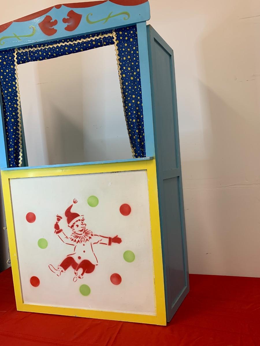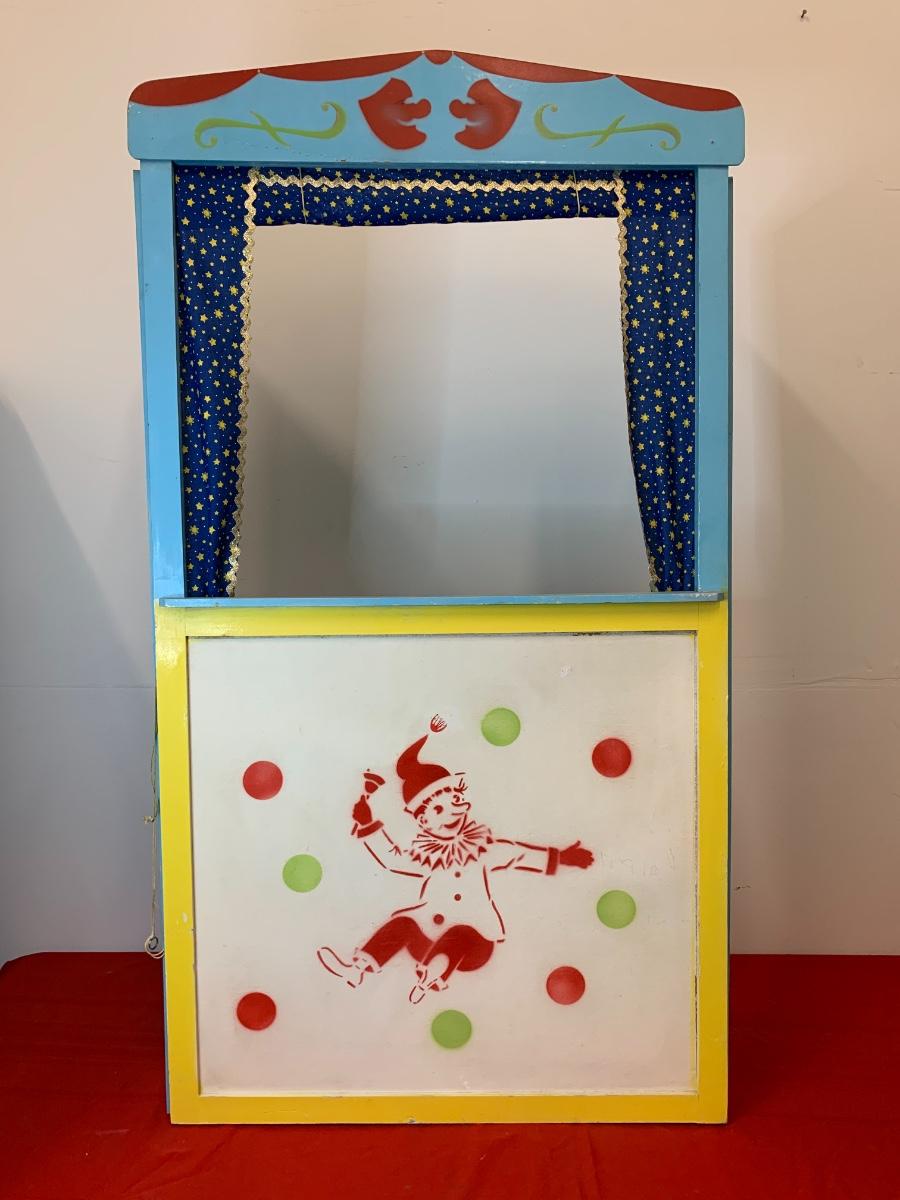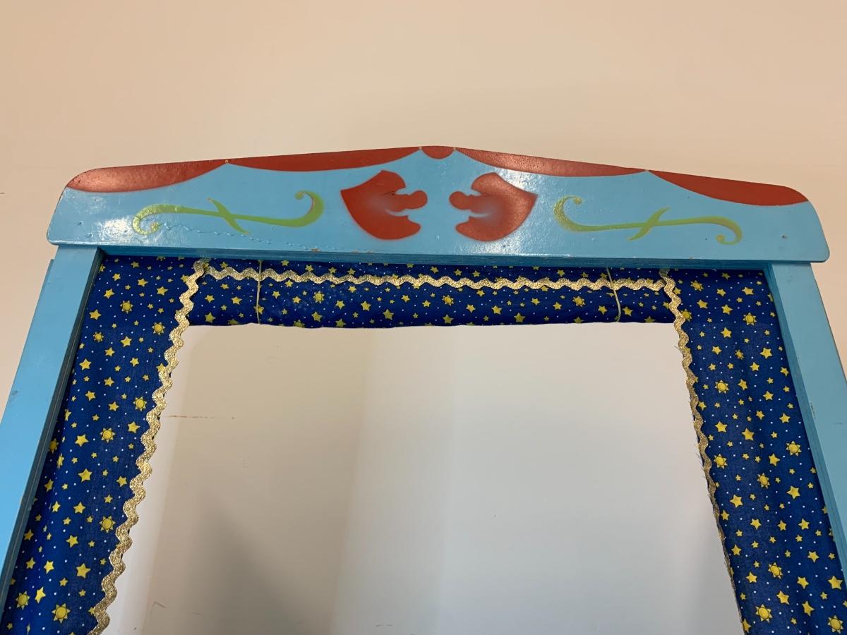 Childrens theater puppet setup in good to great condition with functioning curtains. (53 1/2 inches in height, 28 1/2 inches in width)