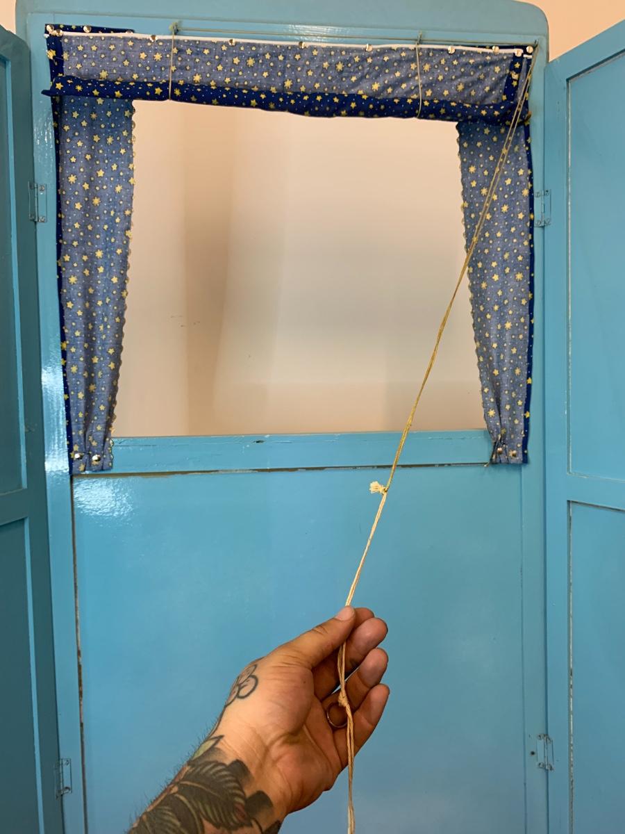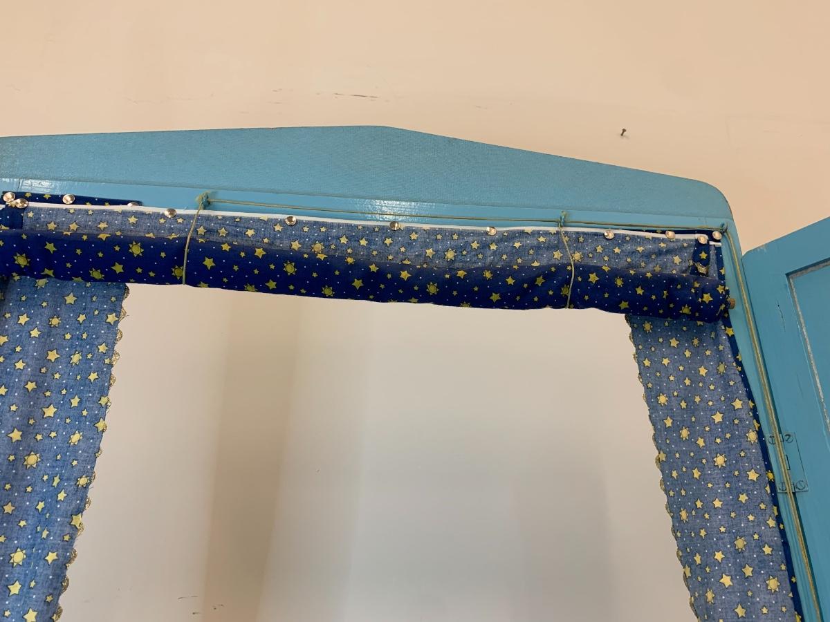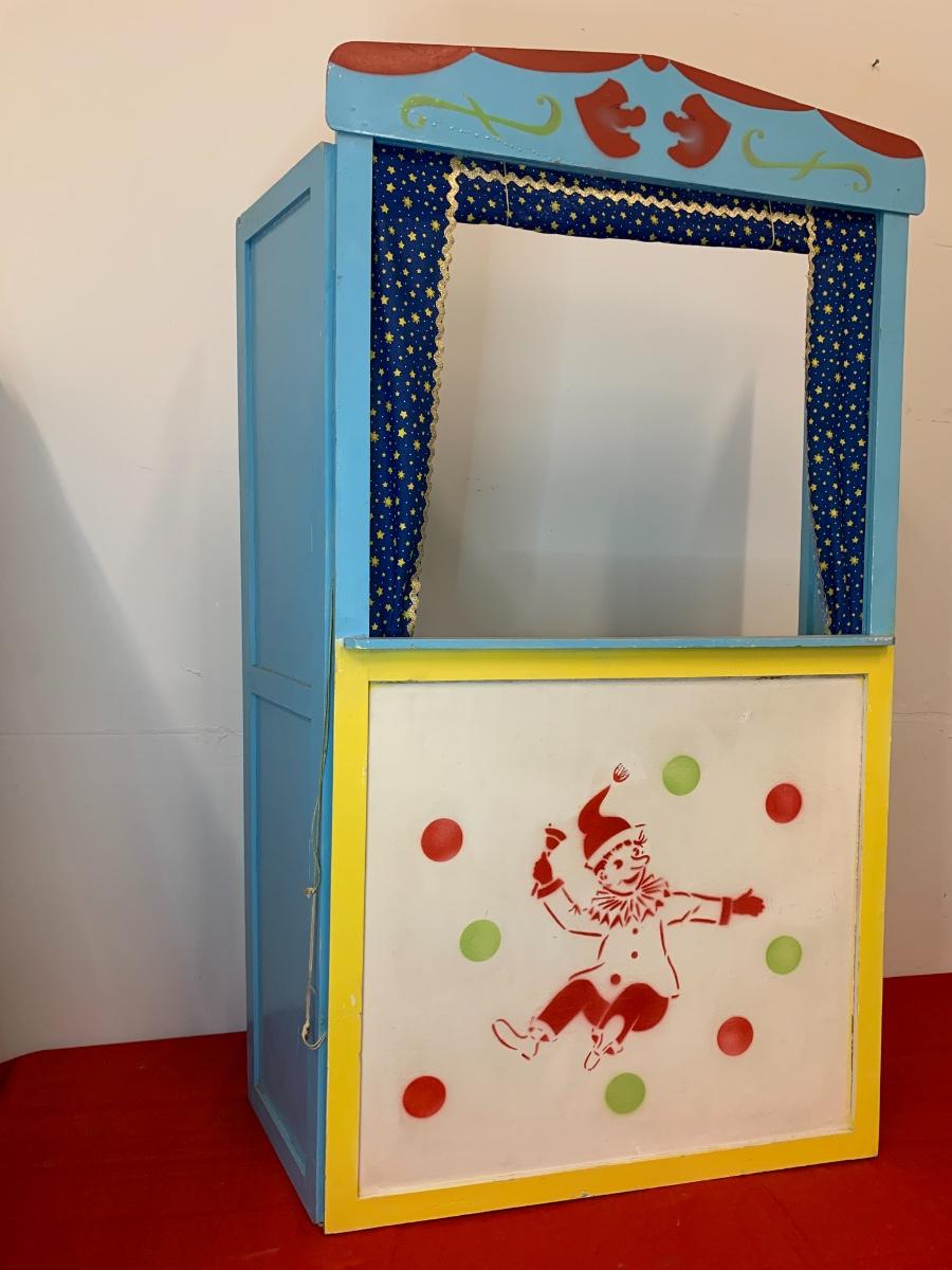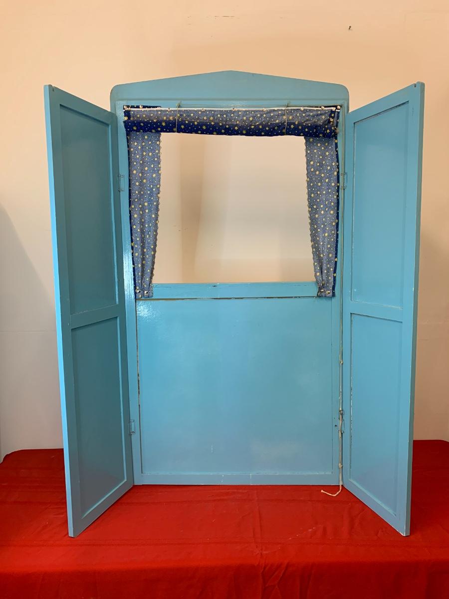 Childrens theater puppet setup in good to great condition with functioning curtains. (53 1/2 inches in height, 28 1/2 inches in width)