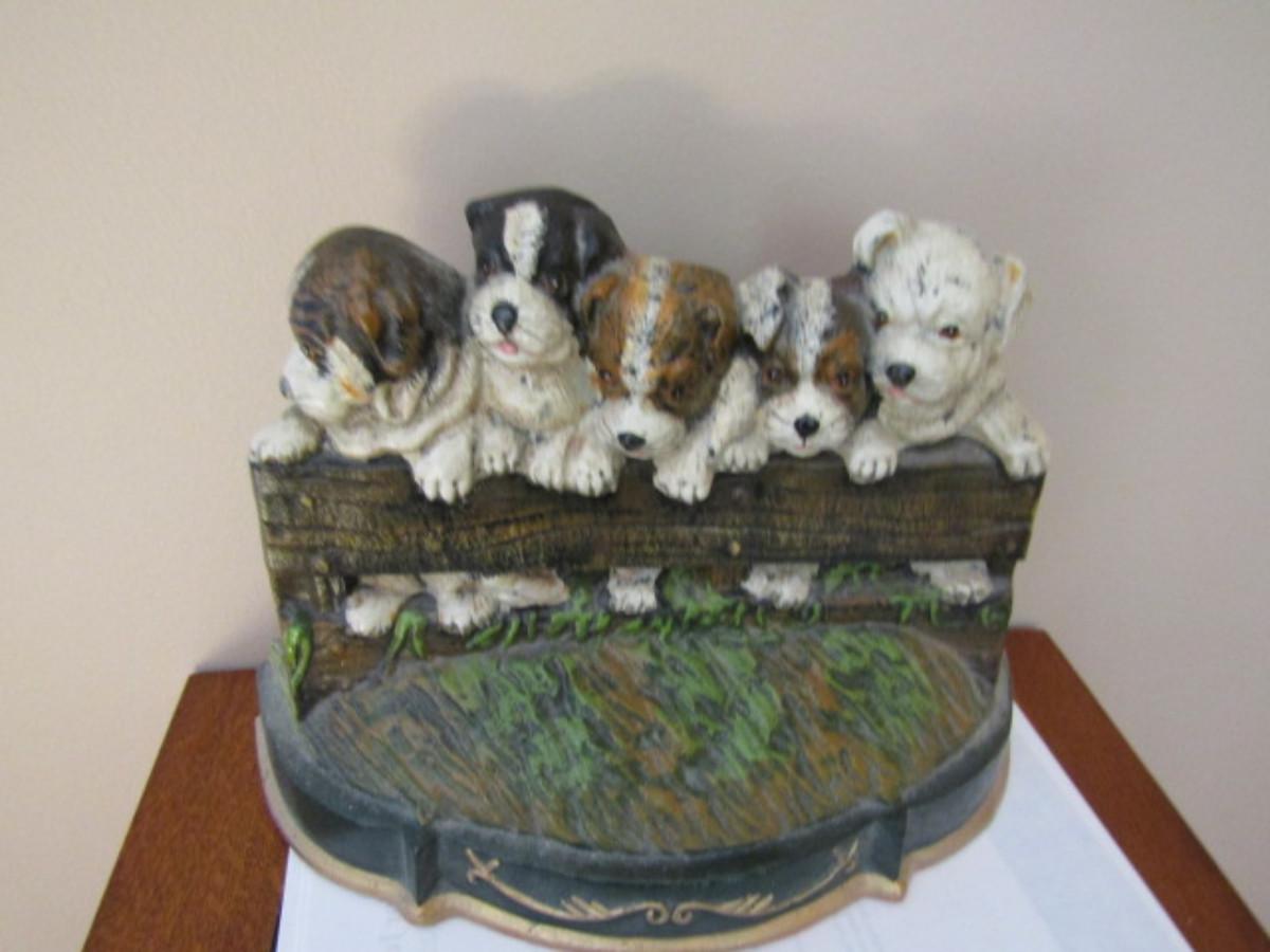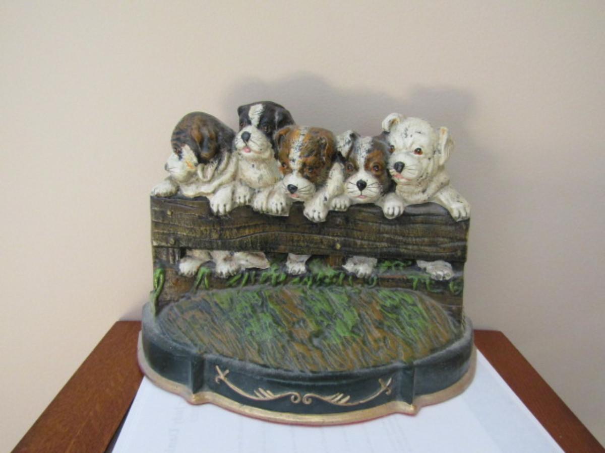 Puppy Themed Cast Metal Doorstop- Approx 8 1/4" Tall, 11" Wide