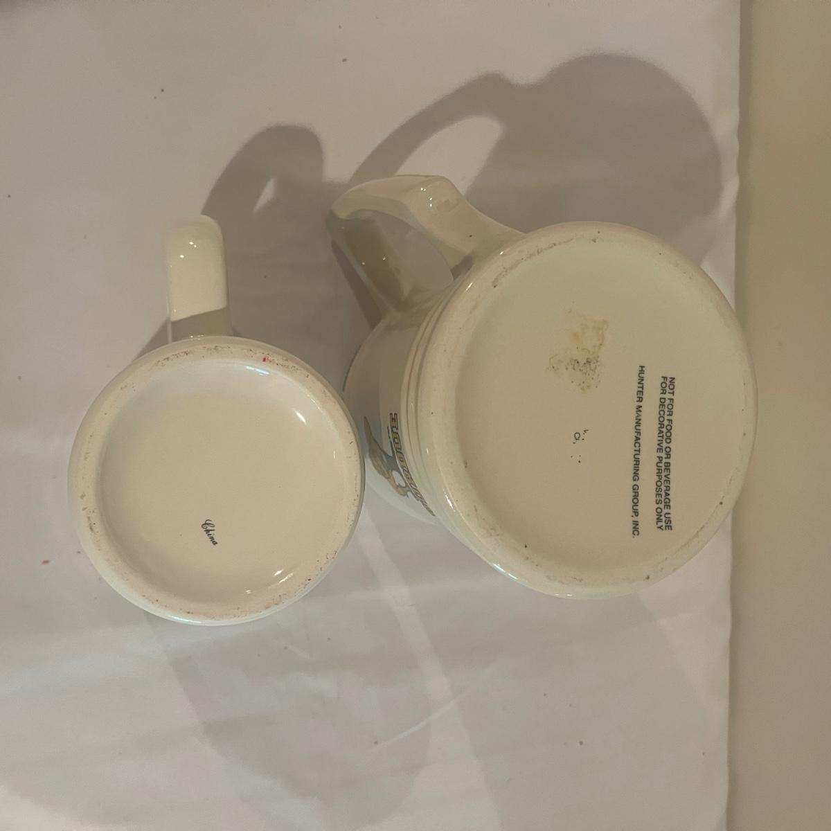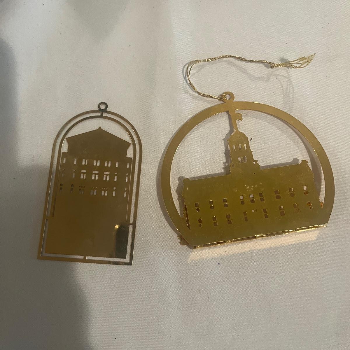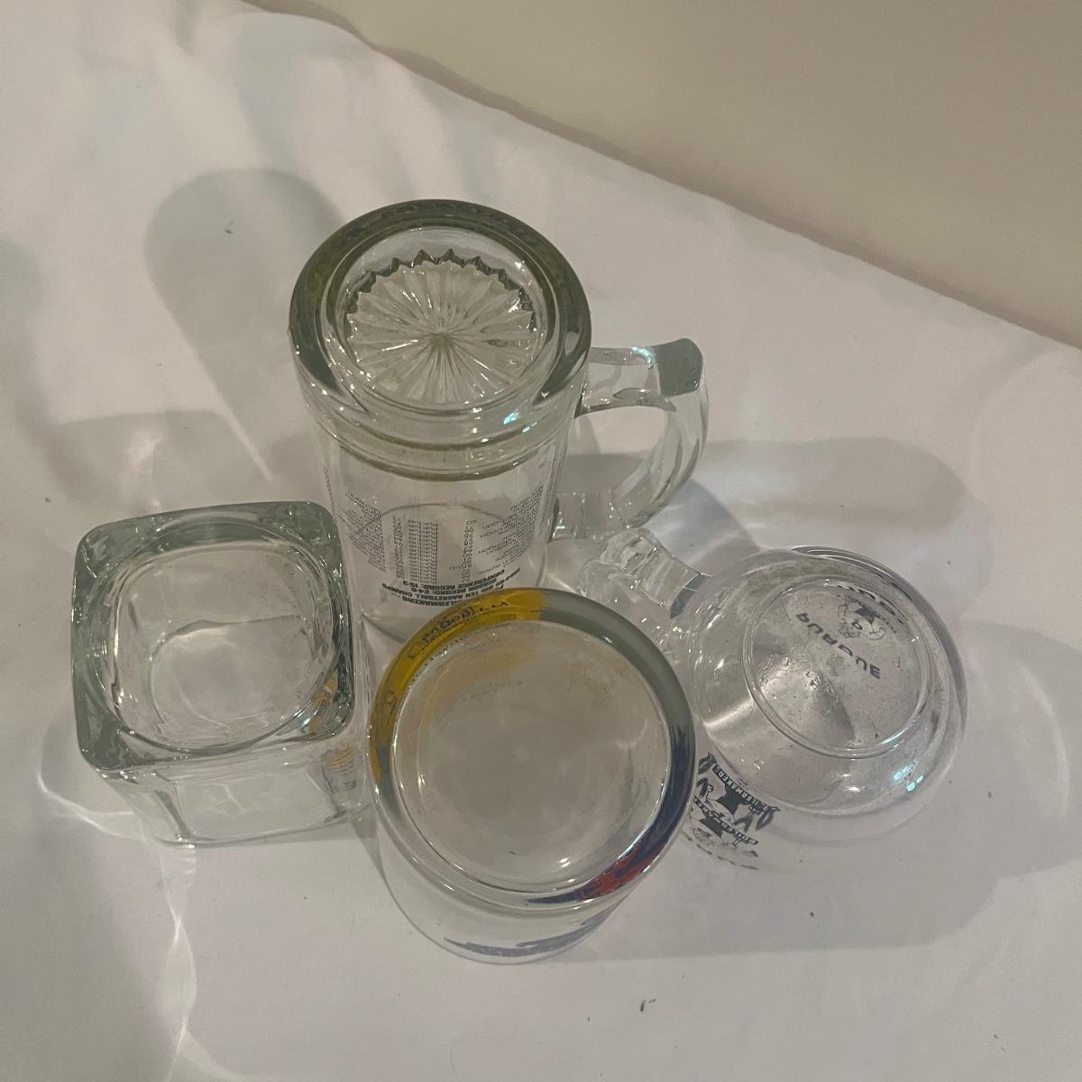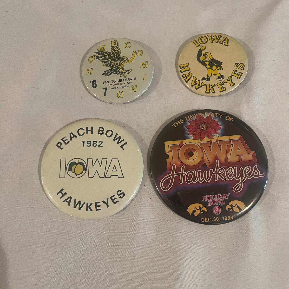 Lot includes a Purdue flag, water bottle, glasses and mugs, mirror, gold colored ornaments and more. Also includes Iowa wastebasket, mirror, tie, mittens, water bottle, glasses and more. Iowa mirror measures 15” x 13”H and Purdue flag measures 58” x 33”H.
