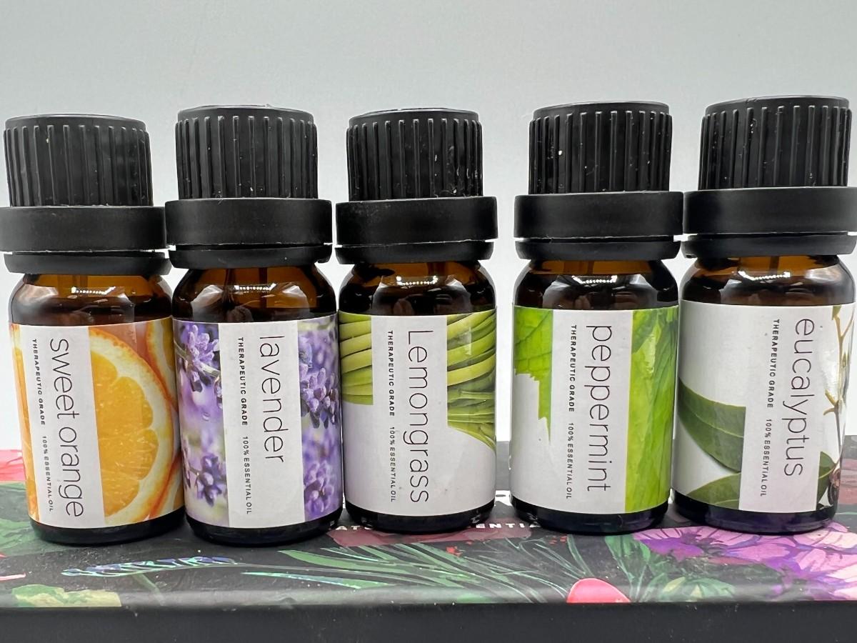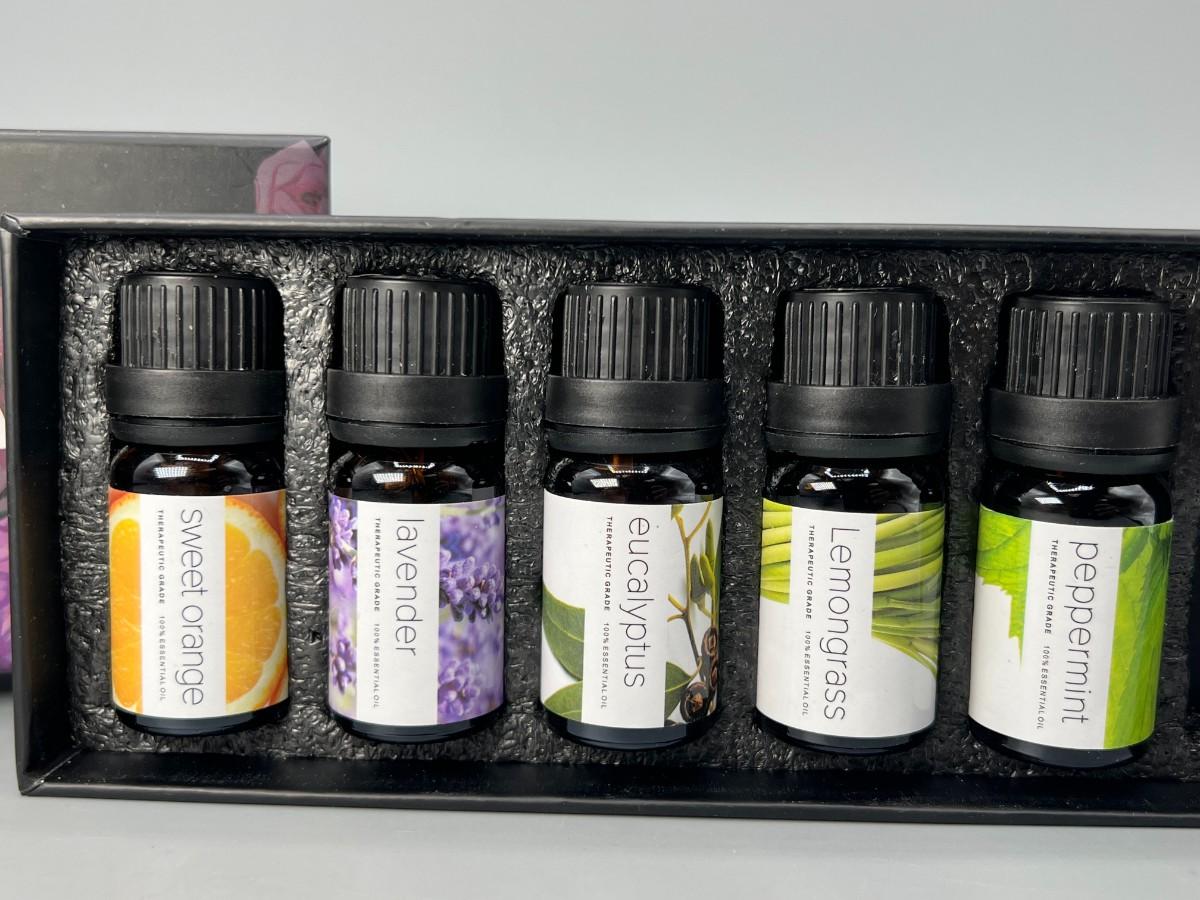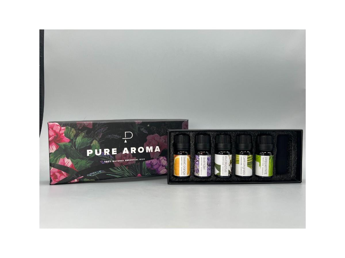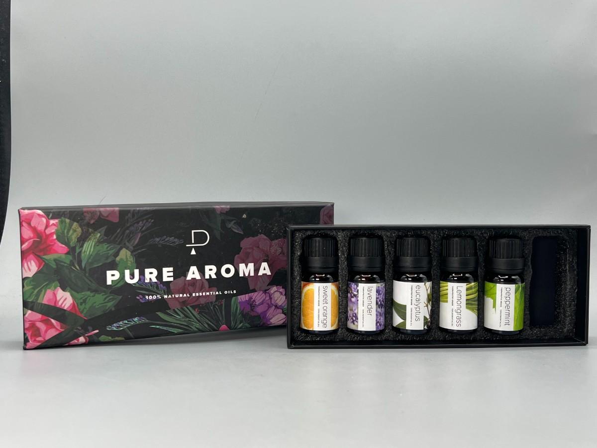 Pure Aroma Essential Oils Set. In original box, one bottle is missing.