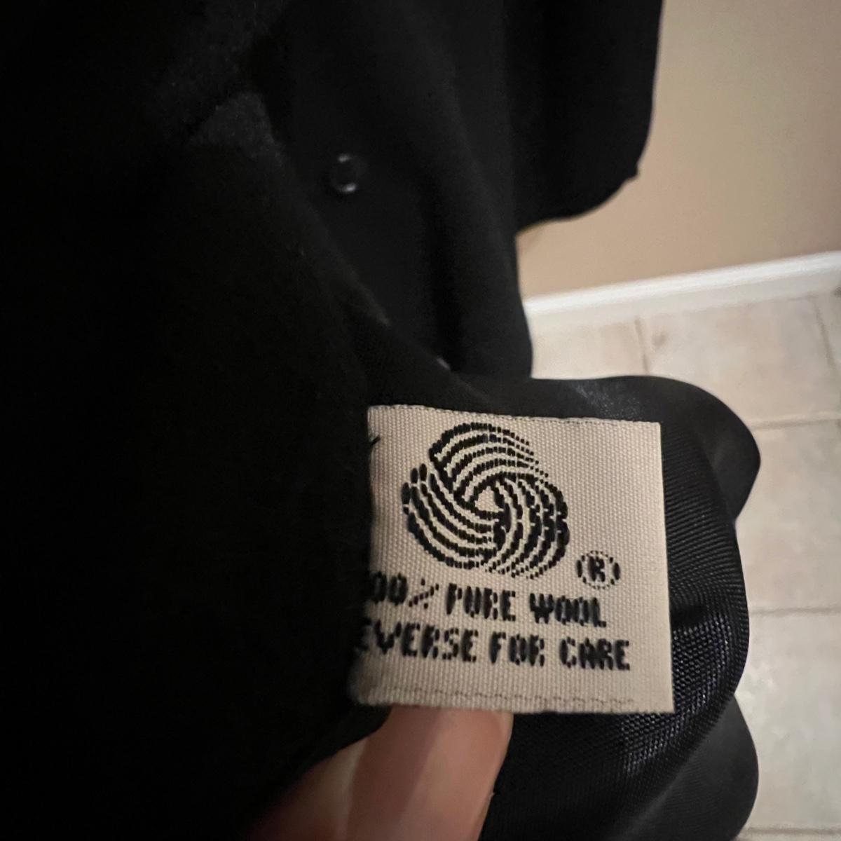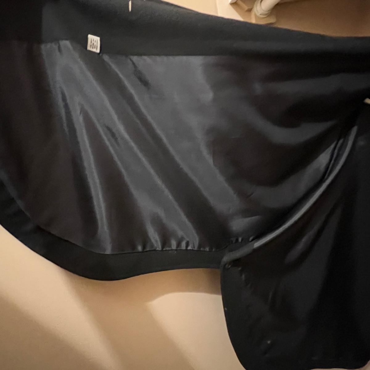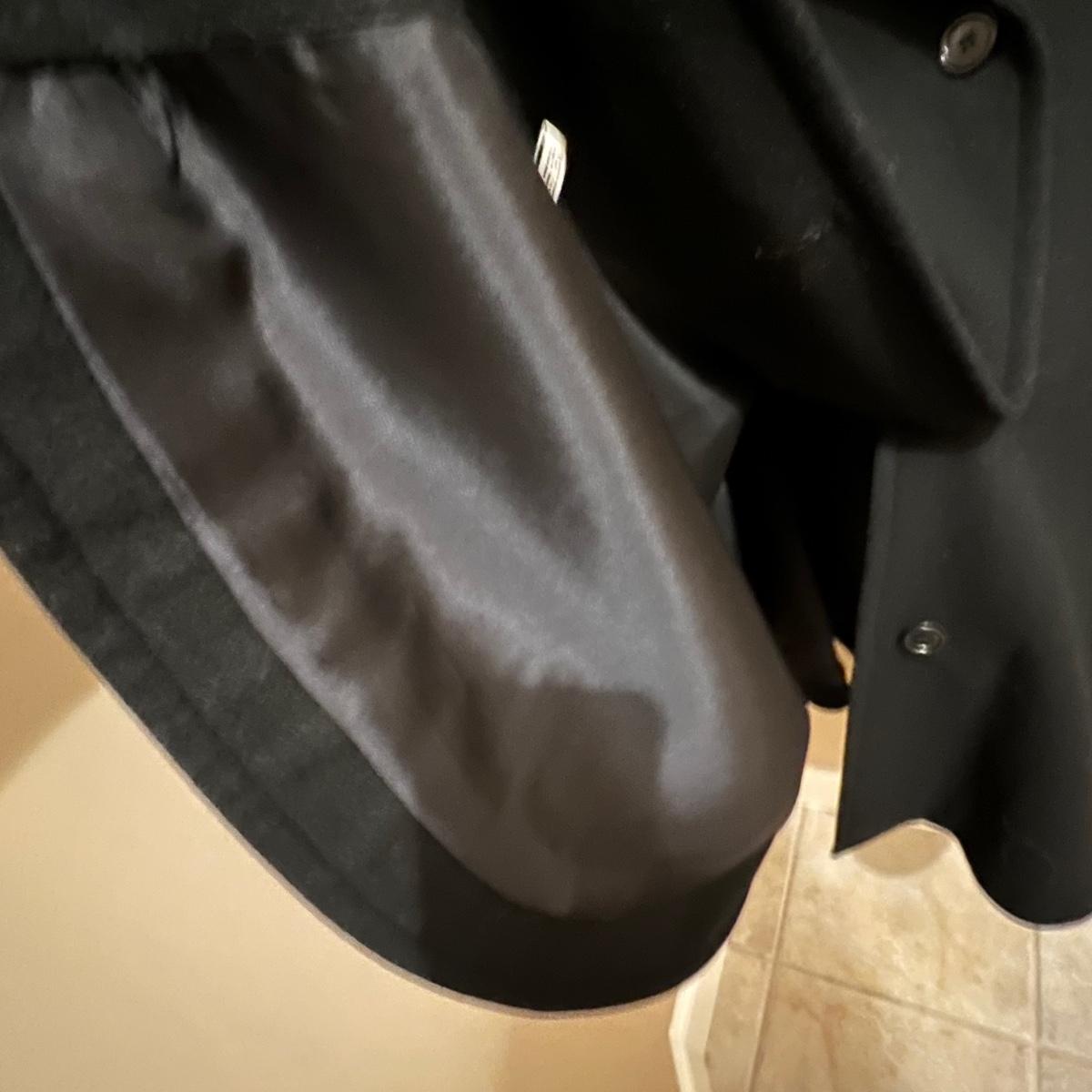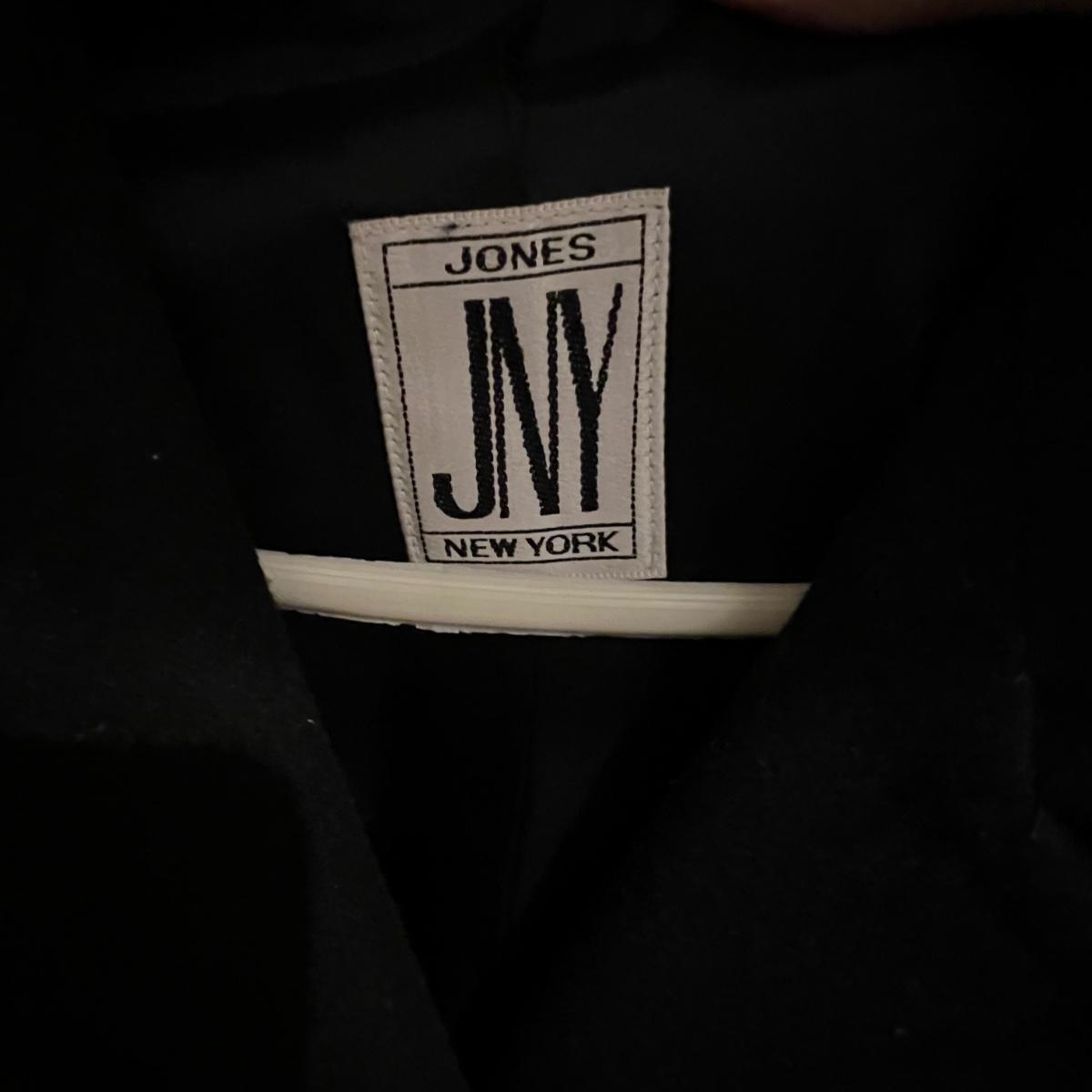 Both of these lined black jackets are wool. The LL Bean is size 12. The Jones NY is a poncho style jacket that measures approximately 17” shoulders x 39” long and would fit a range of sizes due to its loose fit.