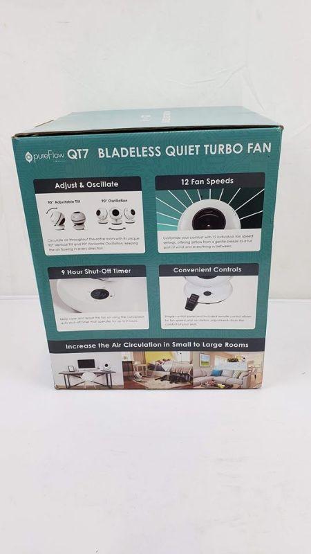 pureFlow QT7 Bladeless 90 degree Safe Oscillating Fan Quiet Operation - New