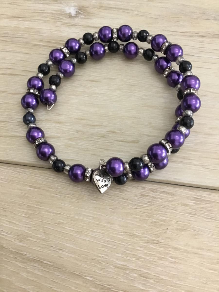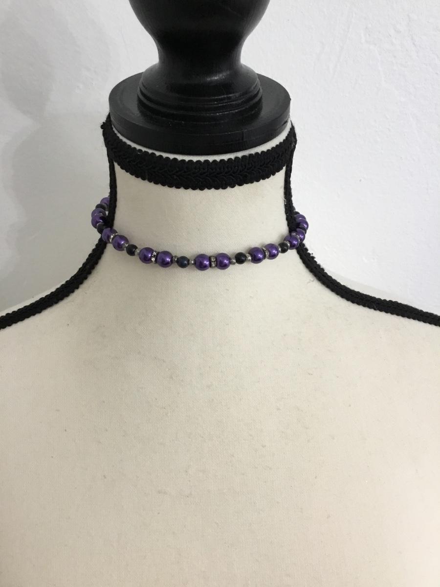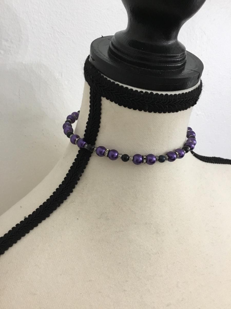 Purple and black beaded choker necklace