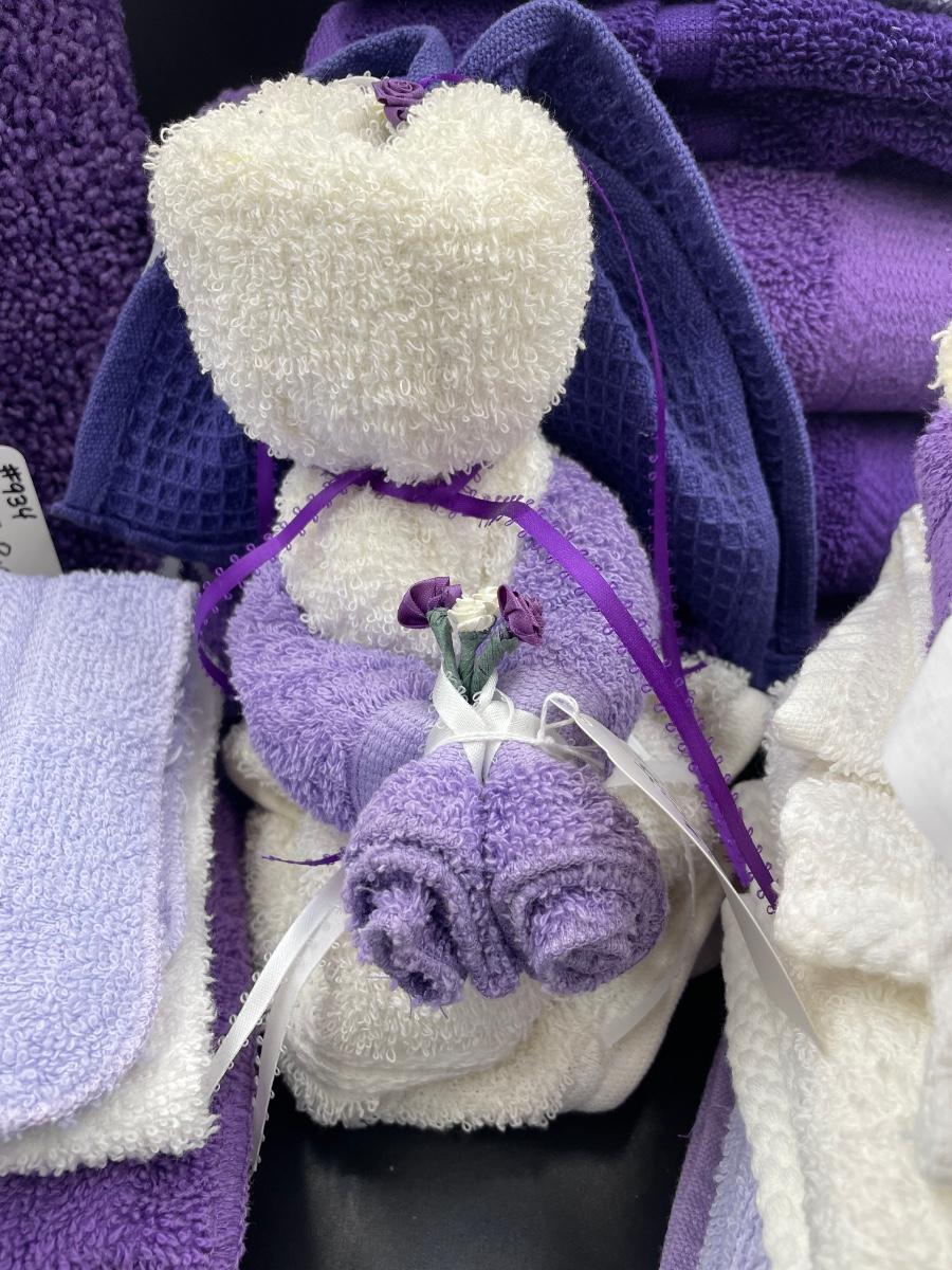 Purple and white towels