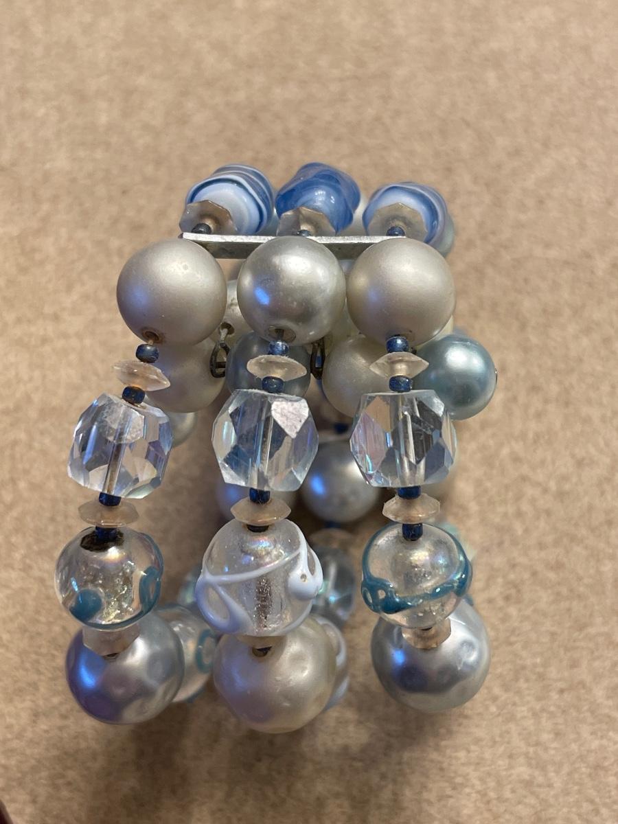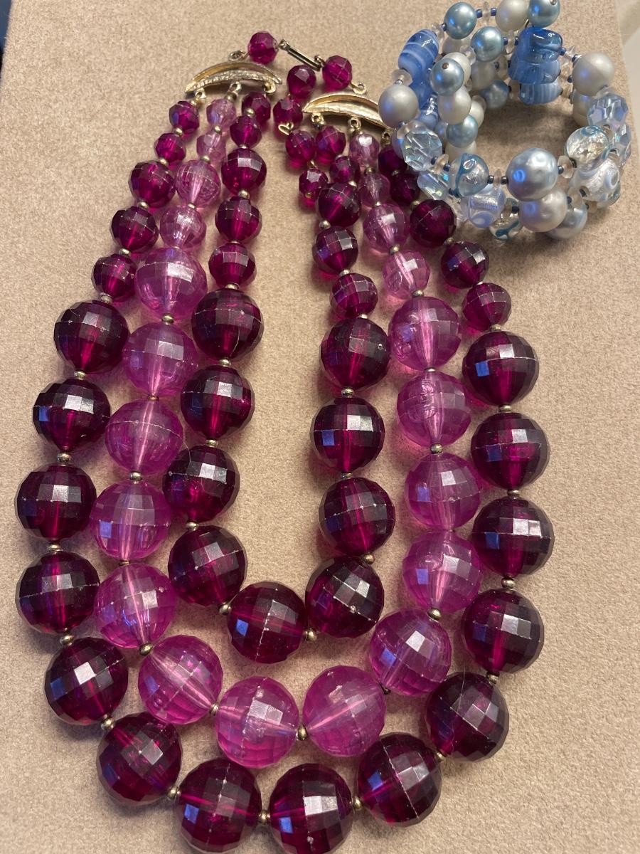 Purple beaded 3 layer necklace and blue beaded bracelet