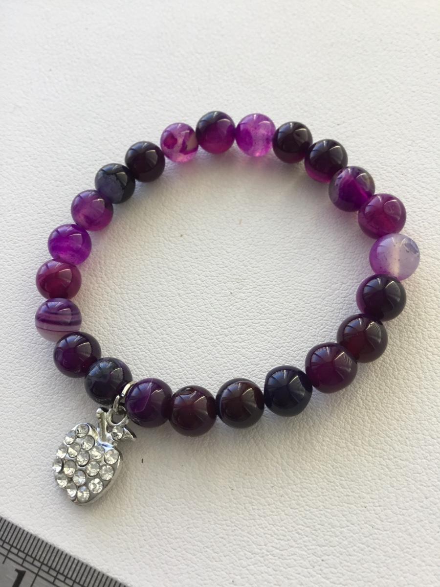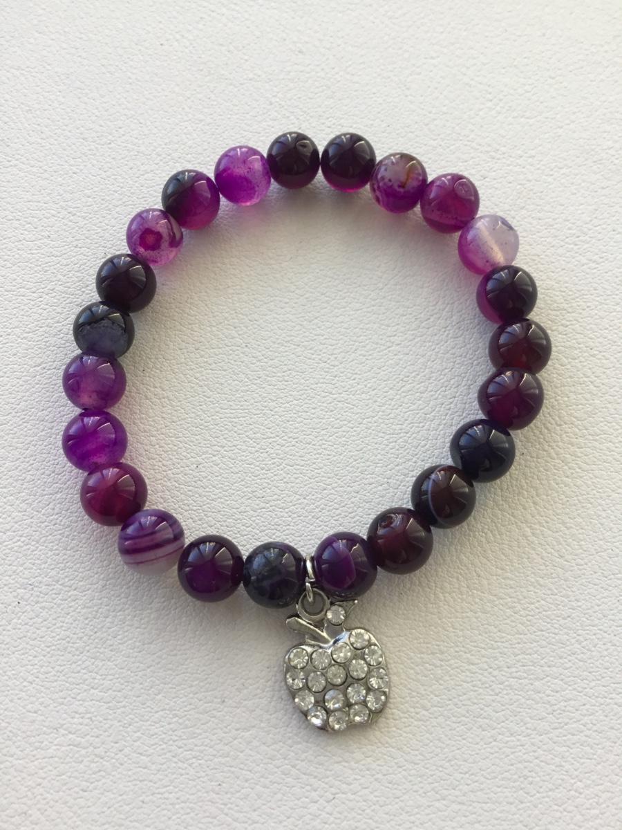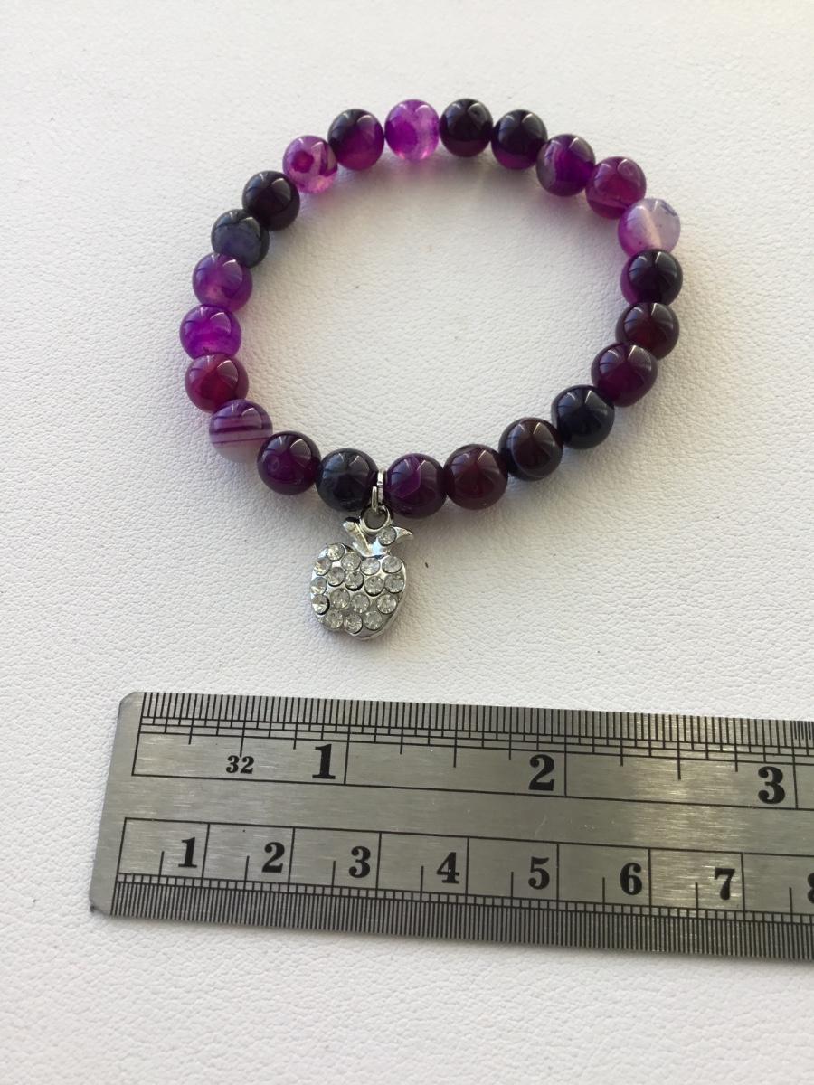 Purple beaded apple charm stretchy bracelet