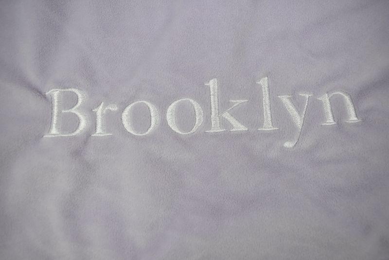 Purple Blanket Embroidered "Brooklyn" by Pottery Barn Kids 28"x40" Needs repair