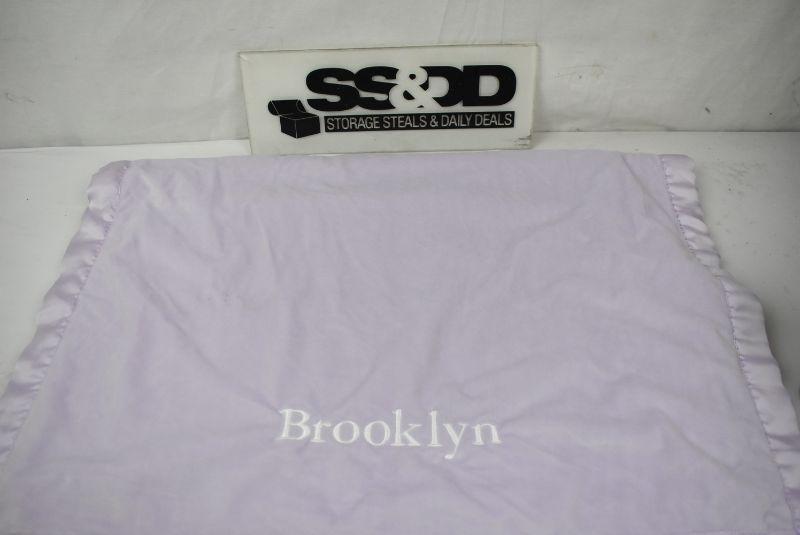 Purple Blanket Embroidered "Brooklyn" by Pottery Barn Kids 28" x 40" Needs repair
