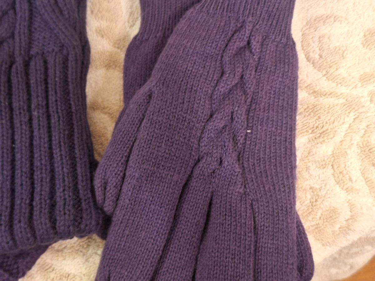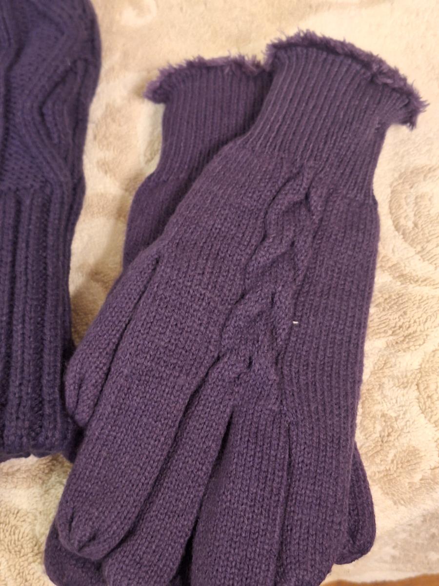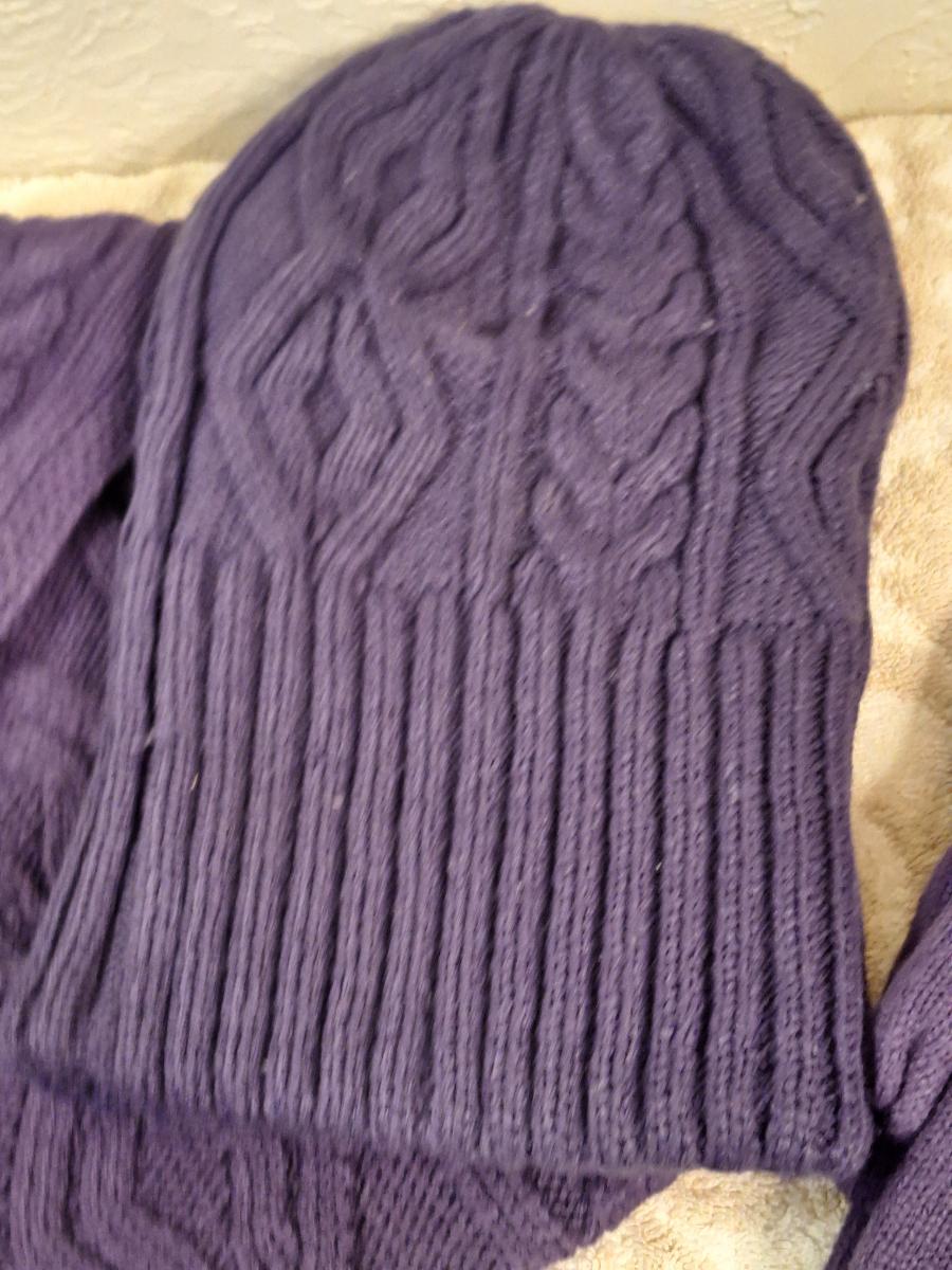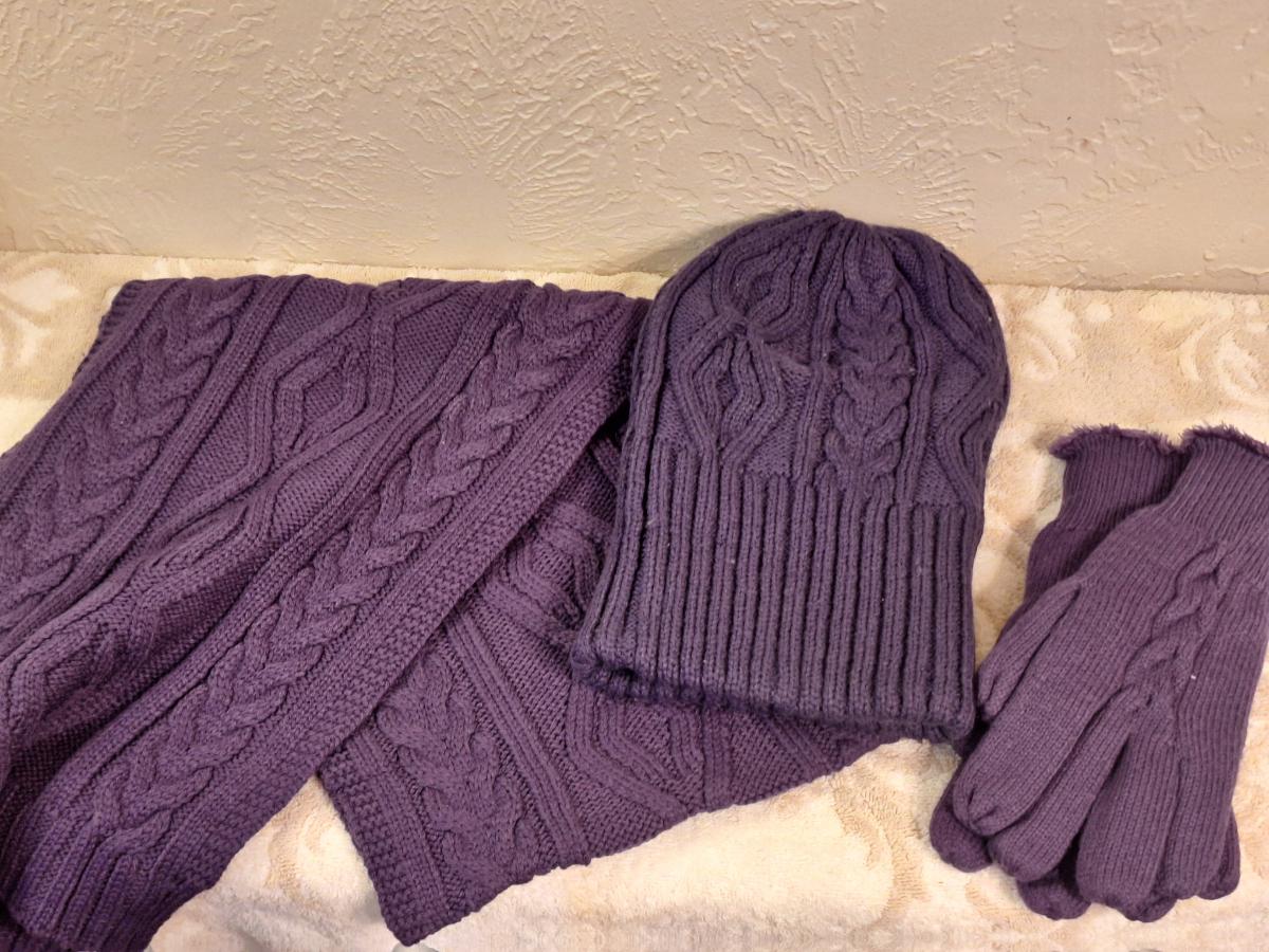 purple cable knit winter hat scarf and gloves set