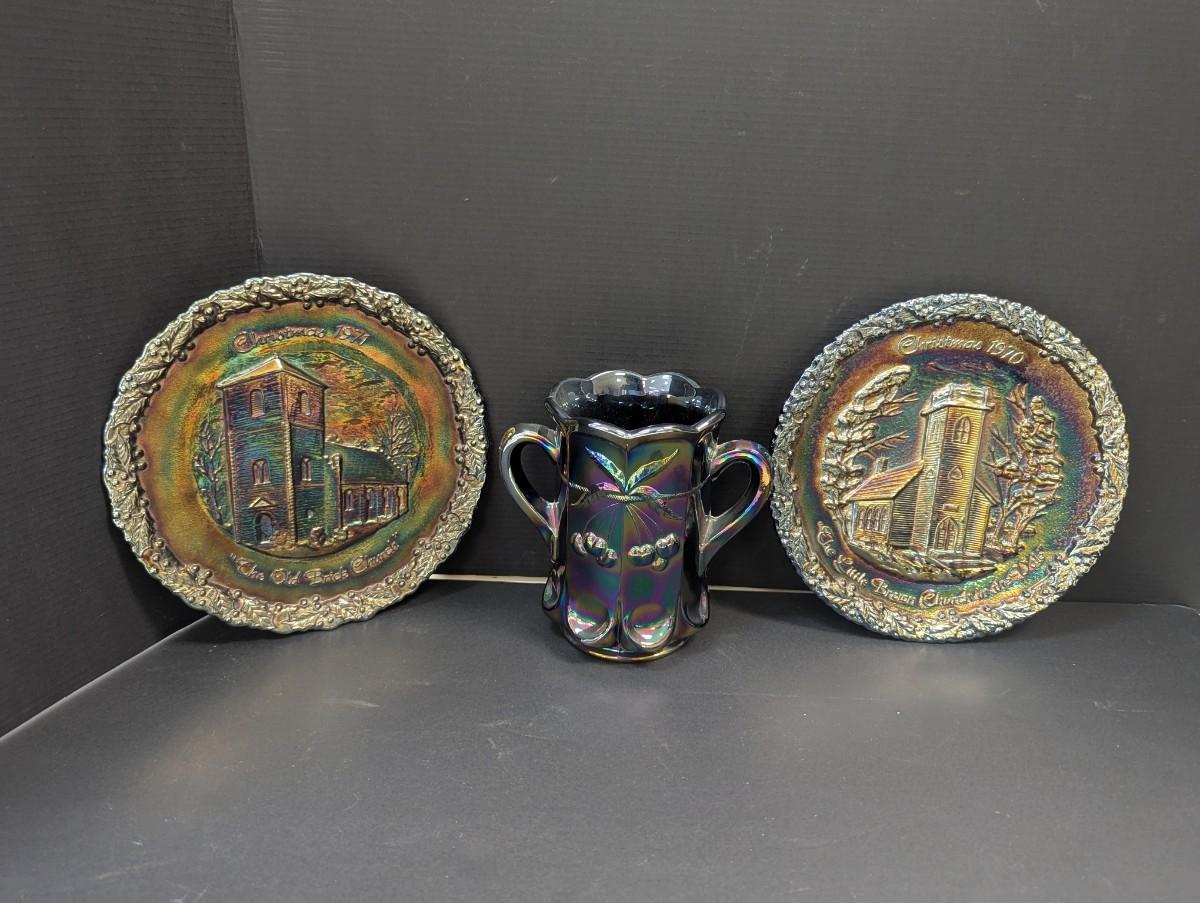Purple Carnival Cheery Spooner By Mosser & Fenton Glass Plates