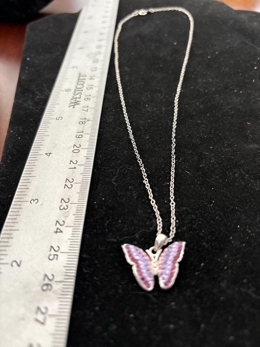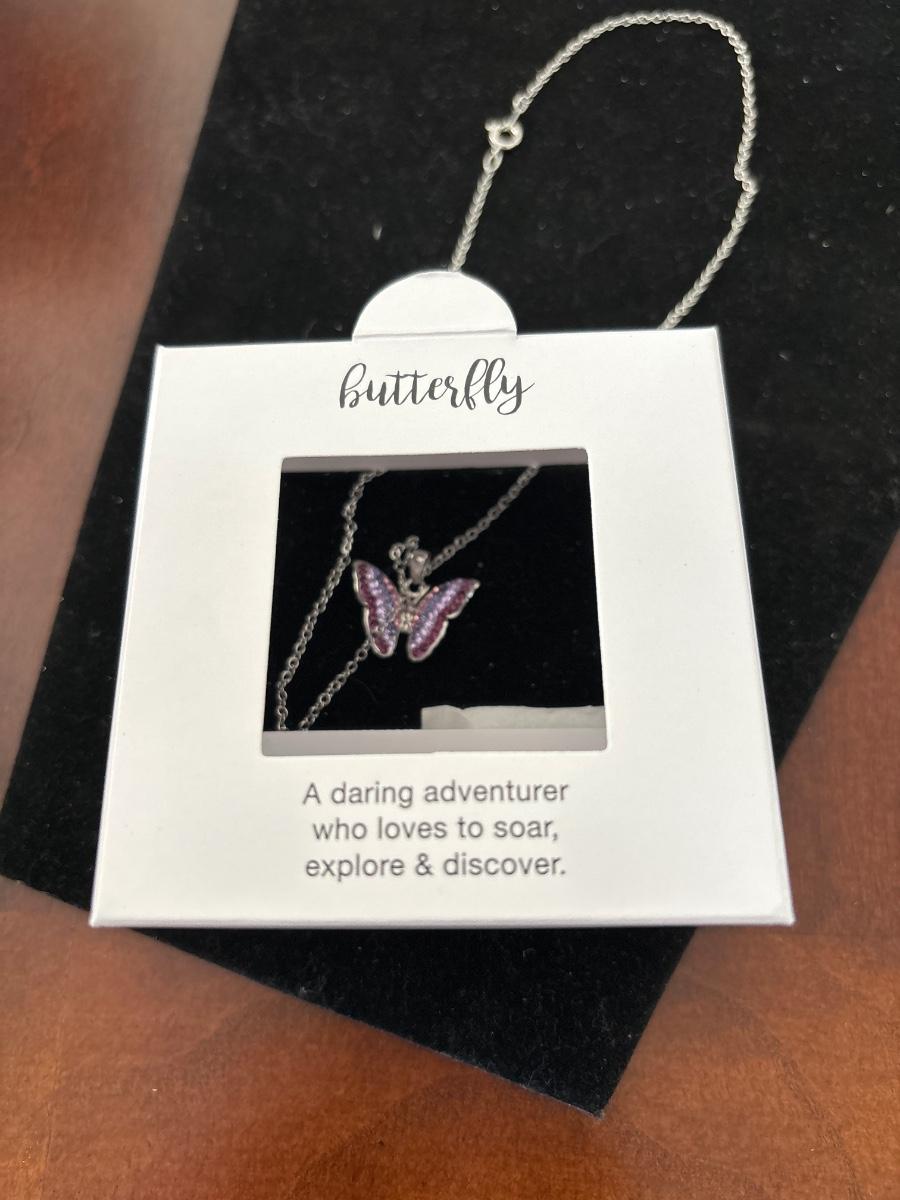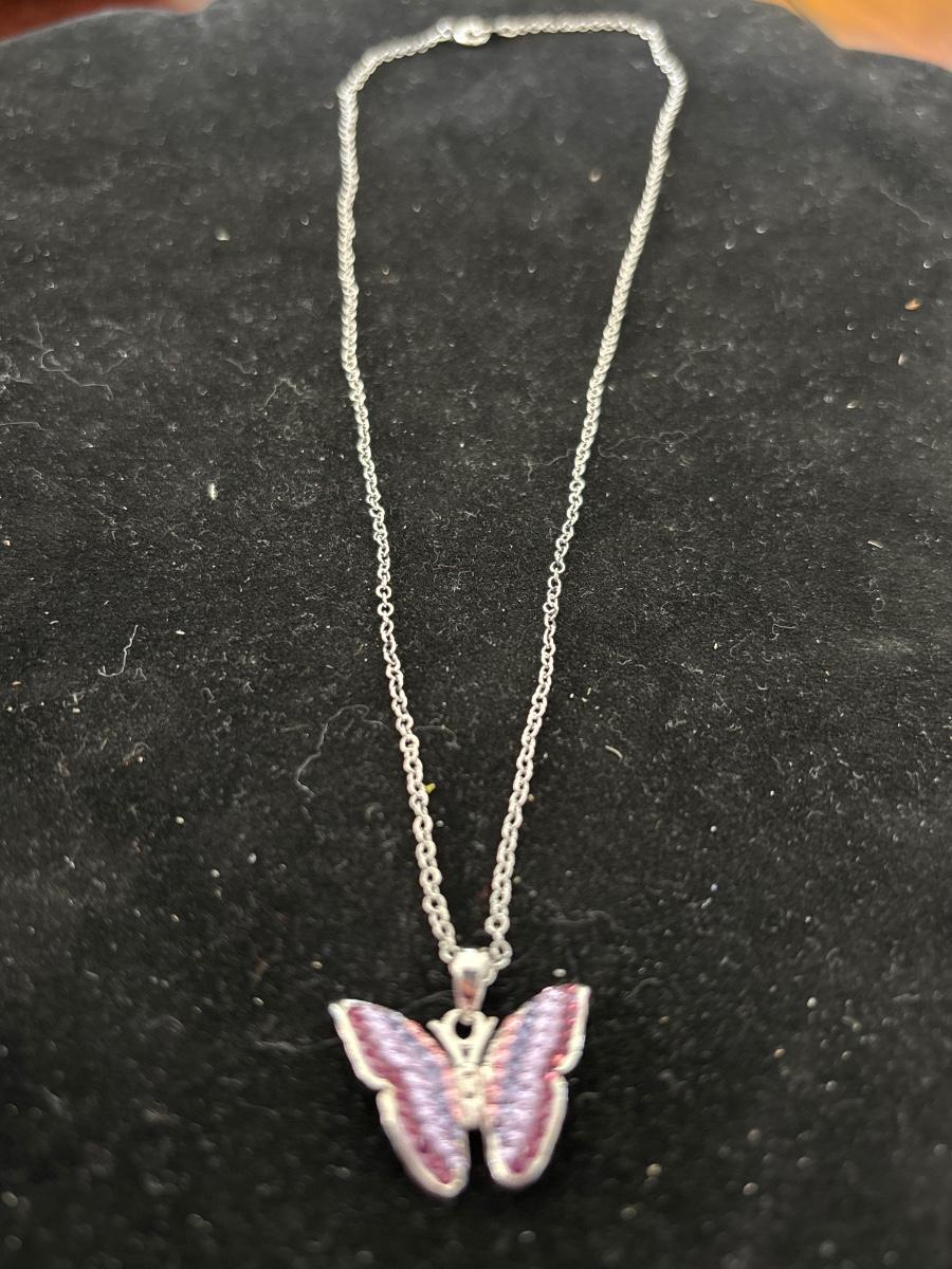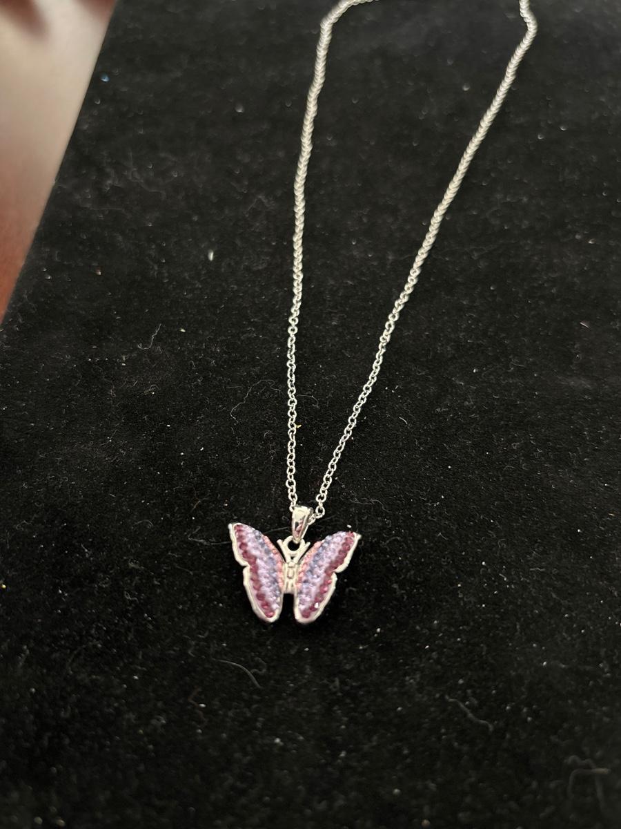 Purple Crystal Butterfly Pendant and Silvertone Chain