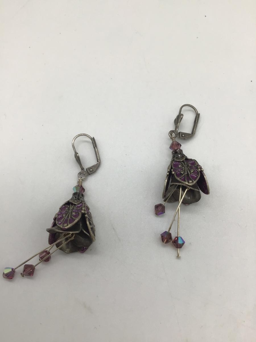 Purple dangle vintage clip on earrings