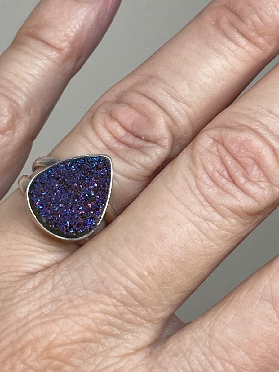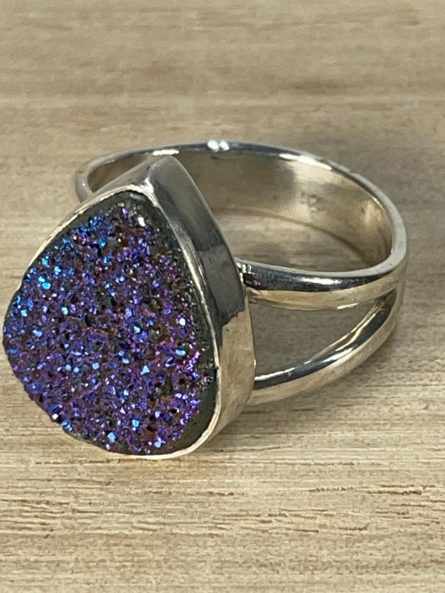 Purple Drusy Sterling silver Ring 7