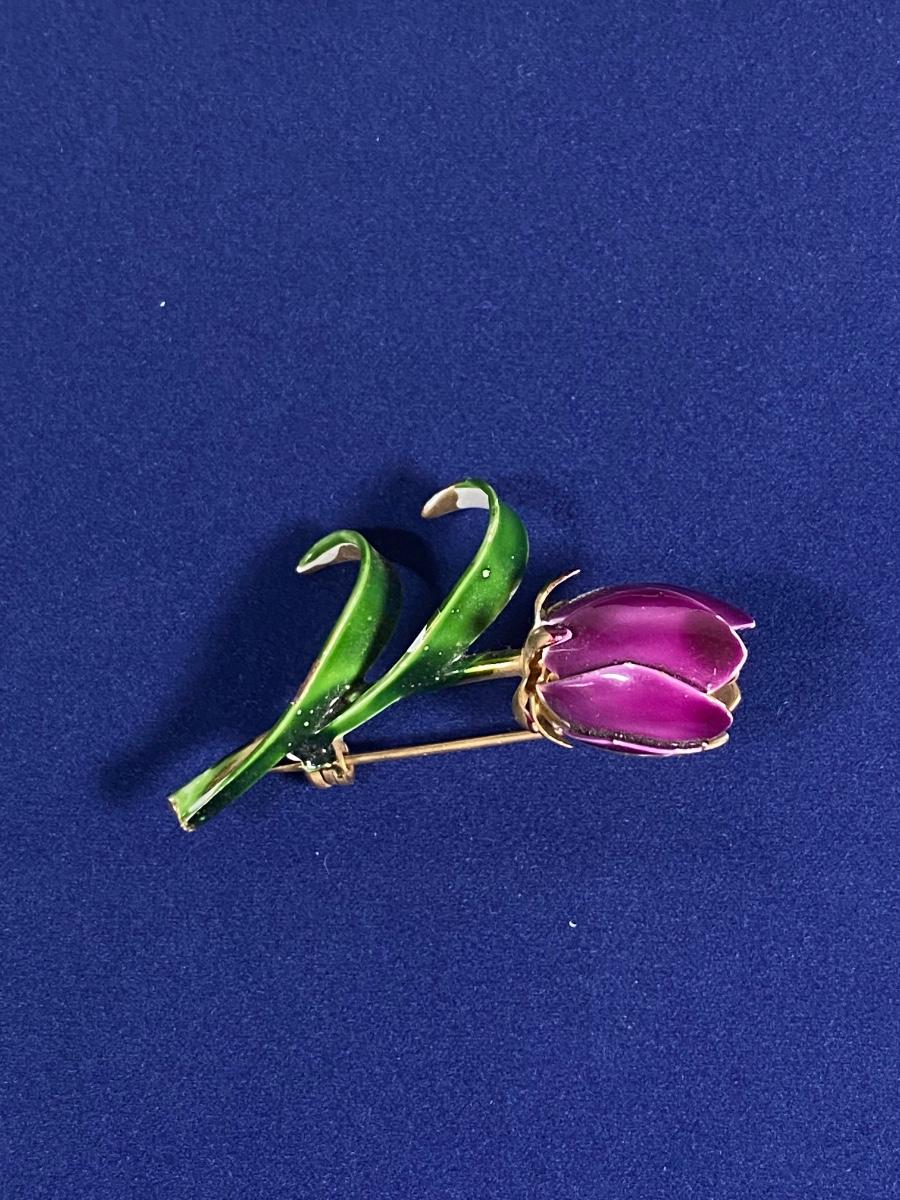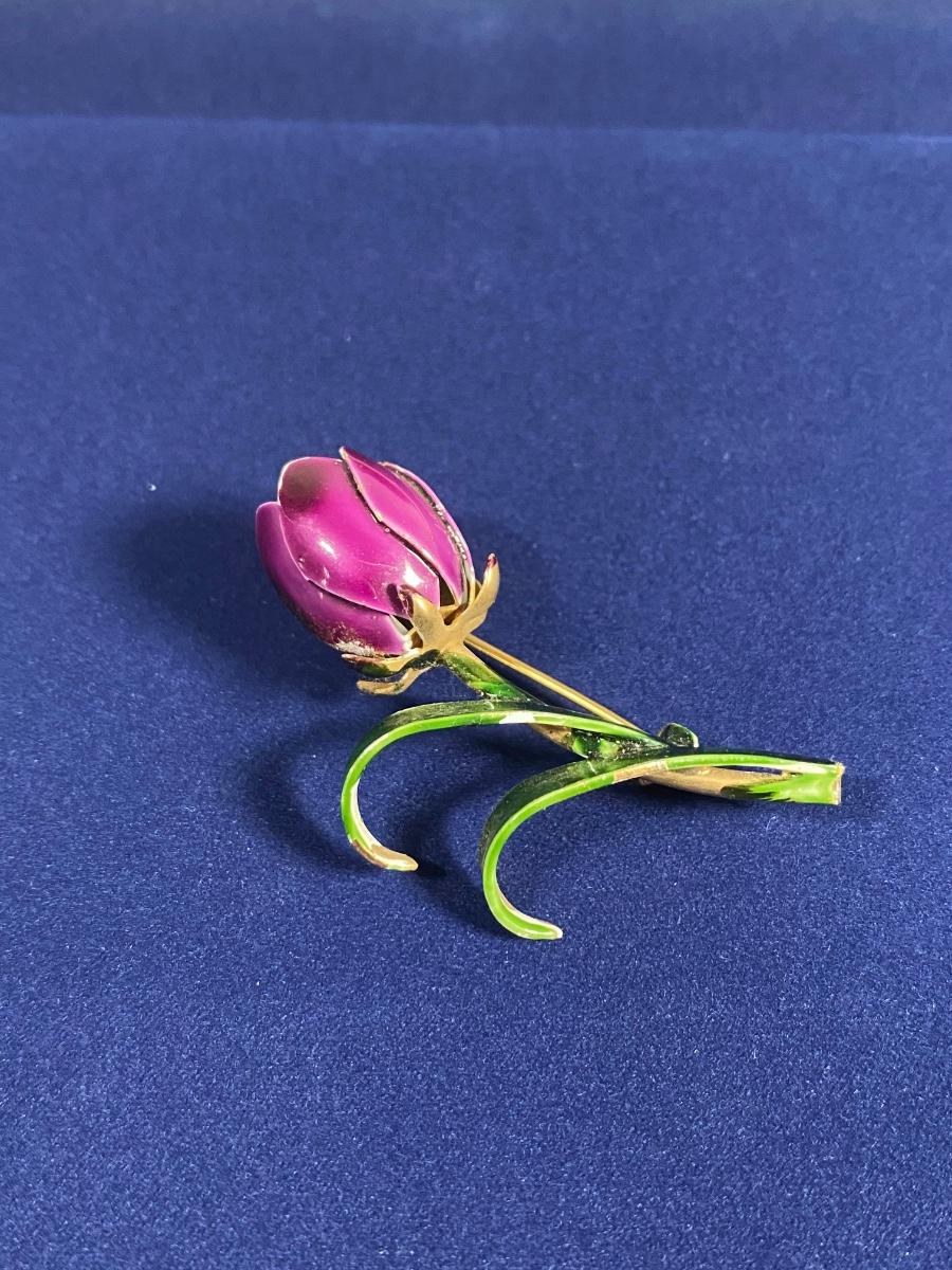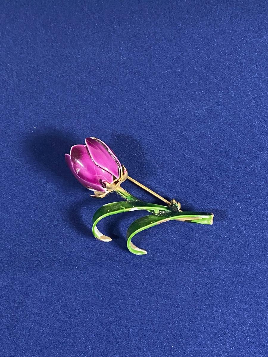 Purple Enamel Tulip Flower Pin Brooch