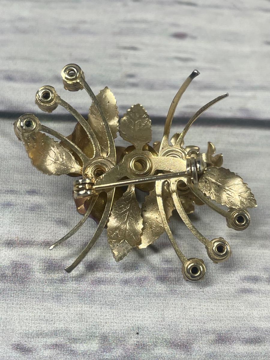 This includes: A set of clip on earrings and matching flower pin. Both items are in perfect condition.