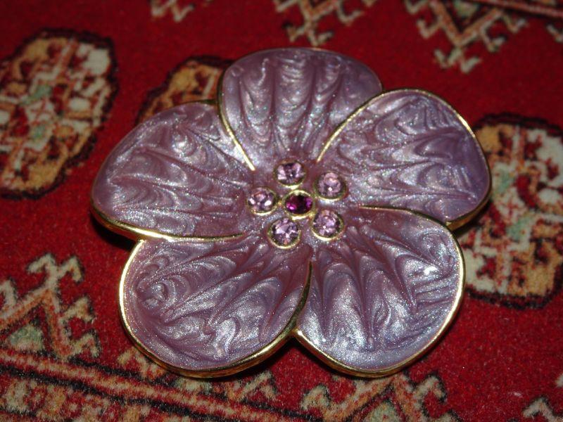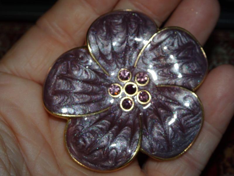 Purple Flower Pin, Rhinestone, Lavender Flower Brooch