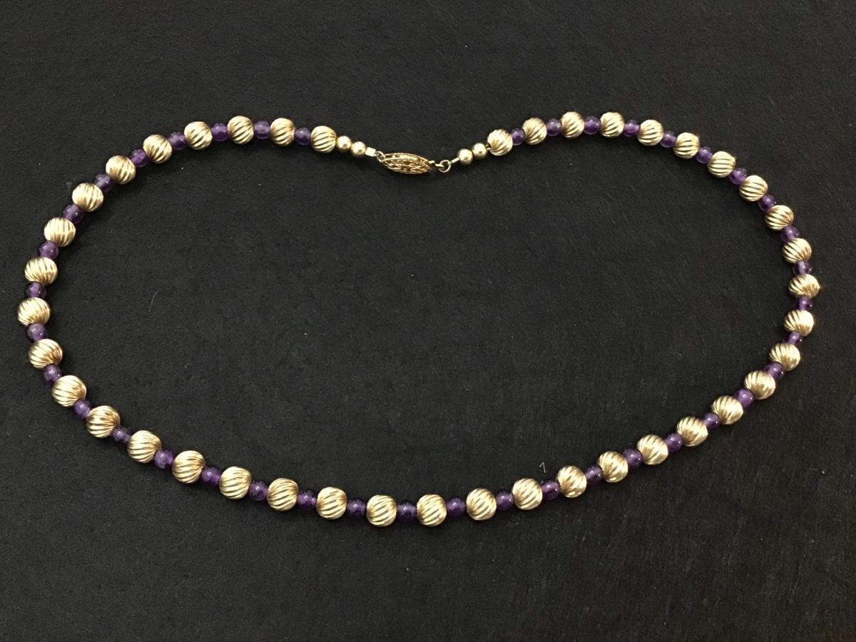 Purple Glass Gold Metal Beaded Vintage Necklace