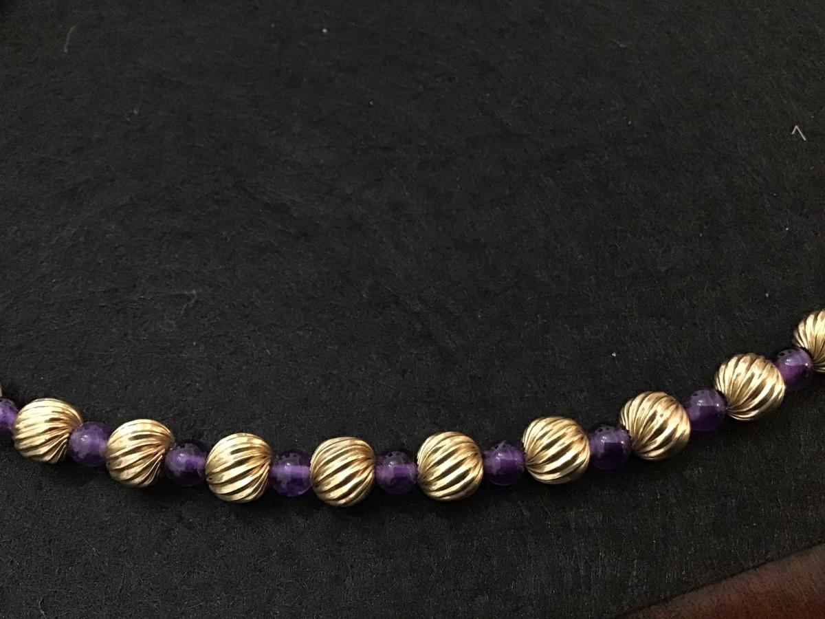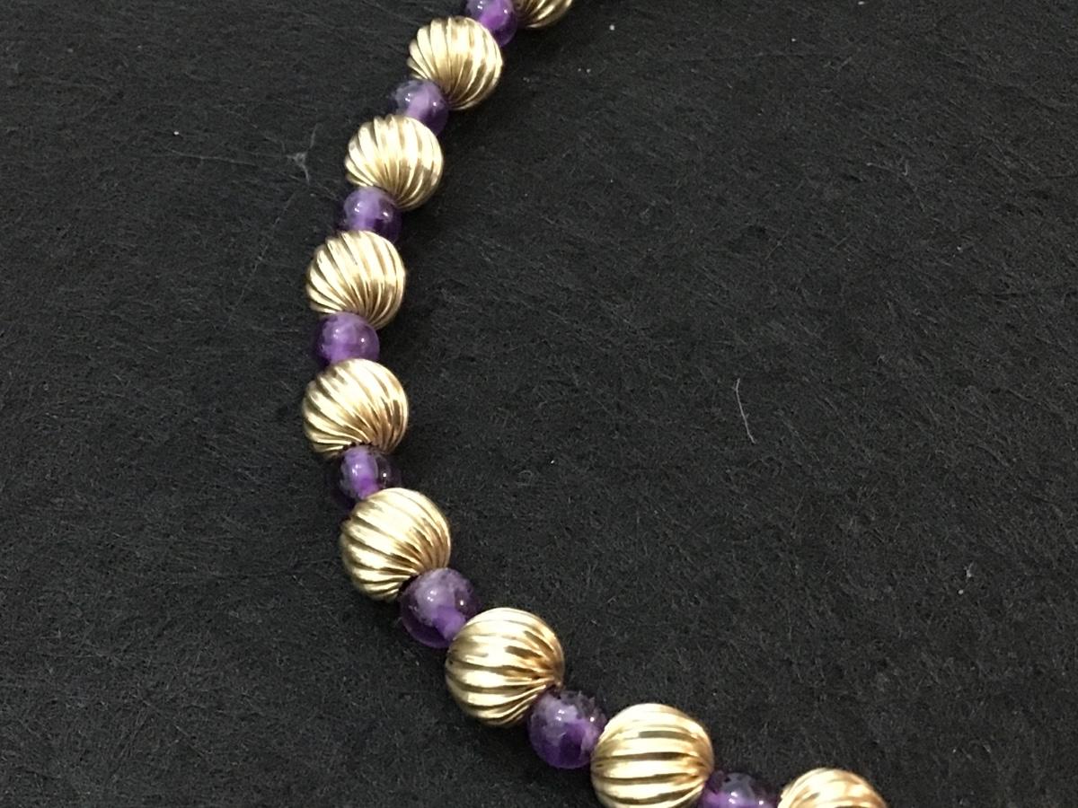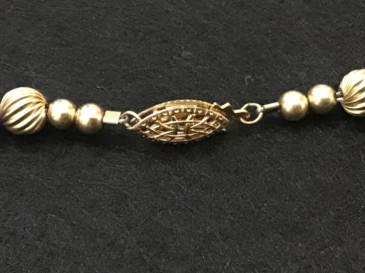 Purple Glass Gold Metal Beaded Vintage Necklace