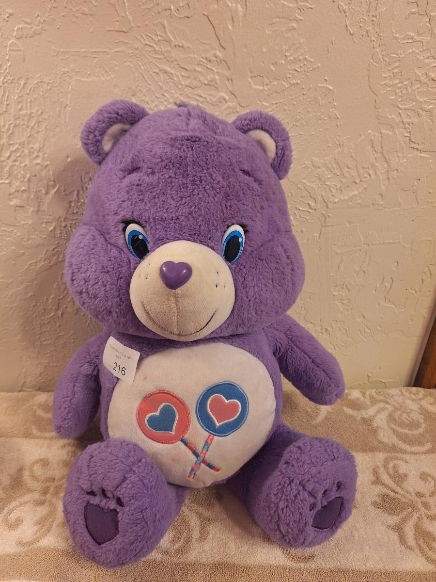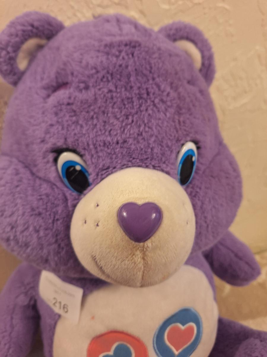 purple Just Play Care Bears Share Bear plush stuffed animal.