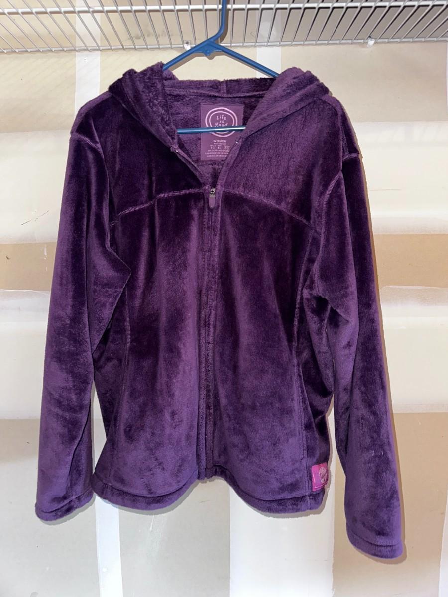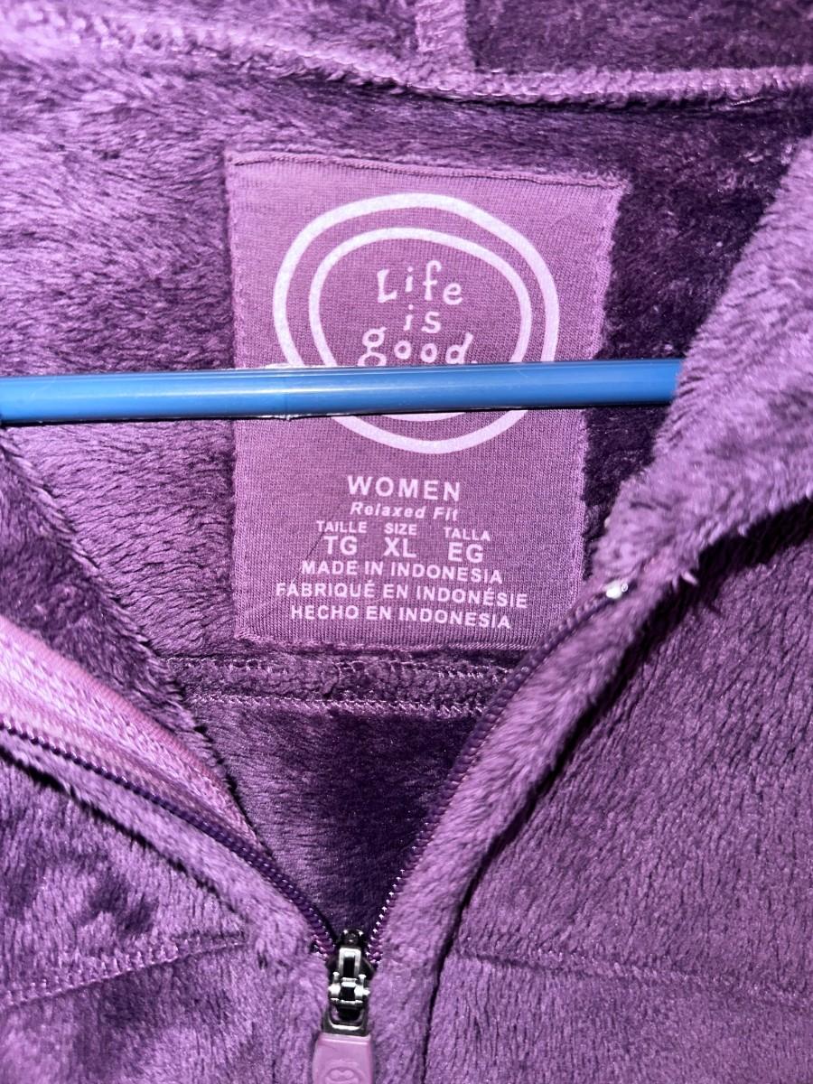 A comfortable women's jacket featuring the uplifting "Life is Good" slogan, great for casual wear and promoting positivity.
