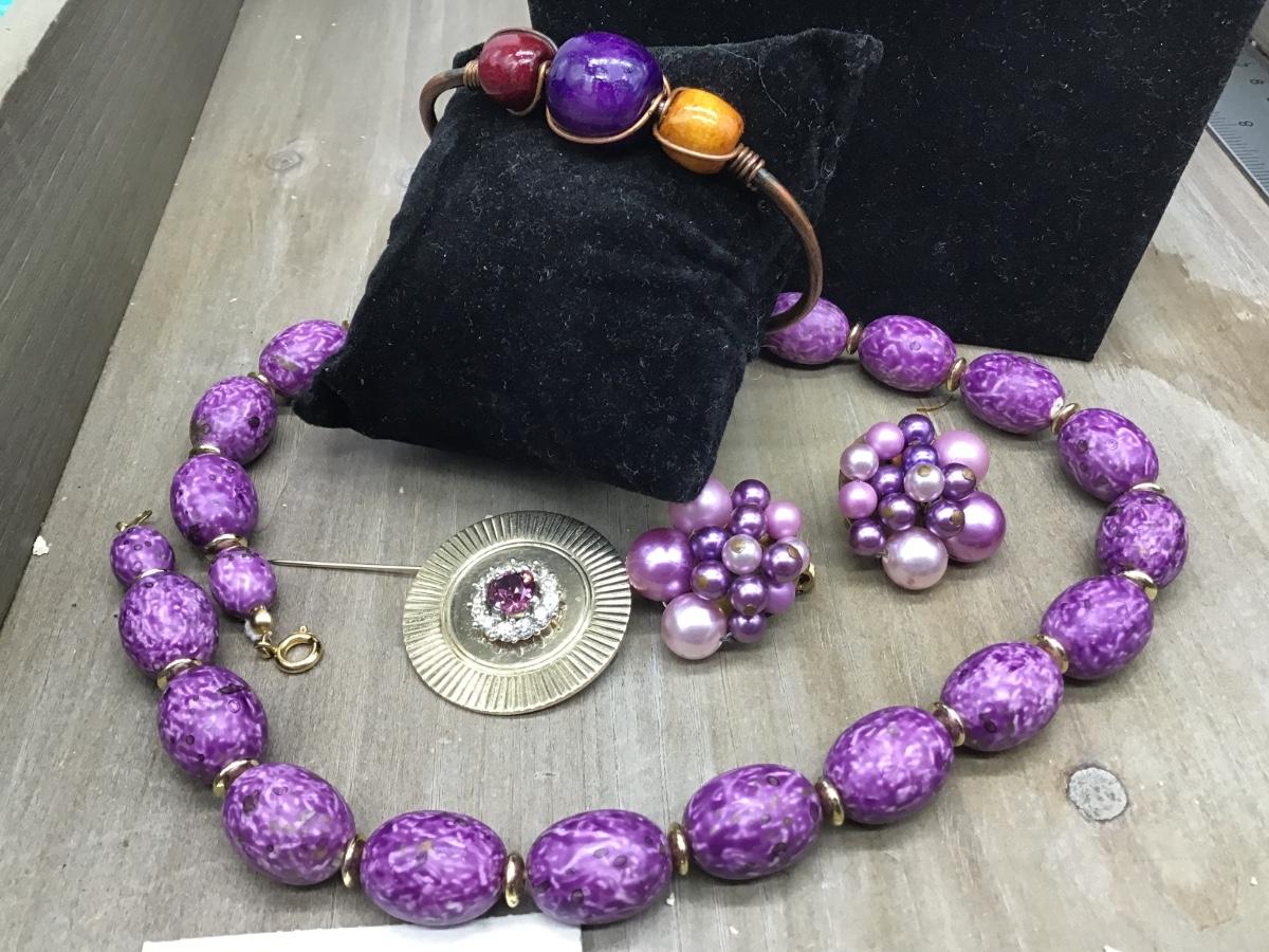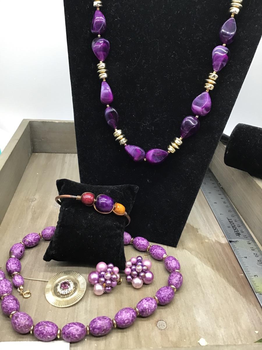 Purple Lot 2 Necklaces. Earrings Brooch Bracelet