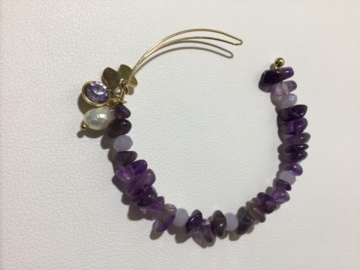 Purple nugget beaded cuff bracelet