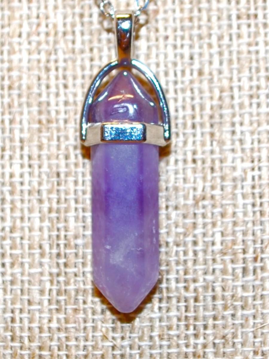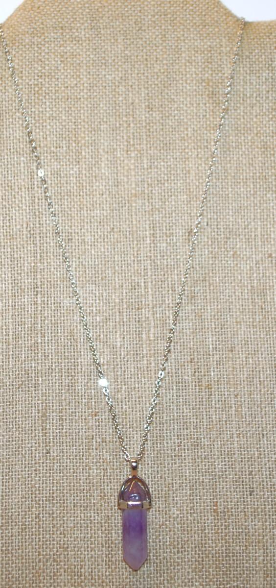 Purple Prism PENDANT (1½" x ½") on a Silver Tone Necklace Chain 18" L