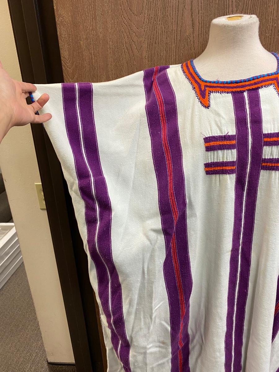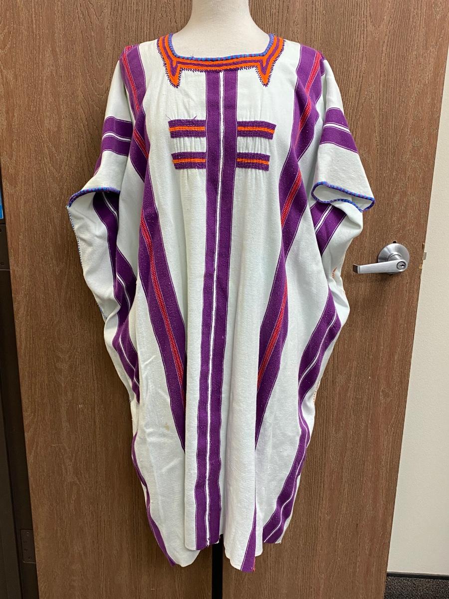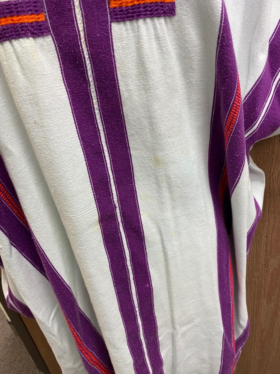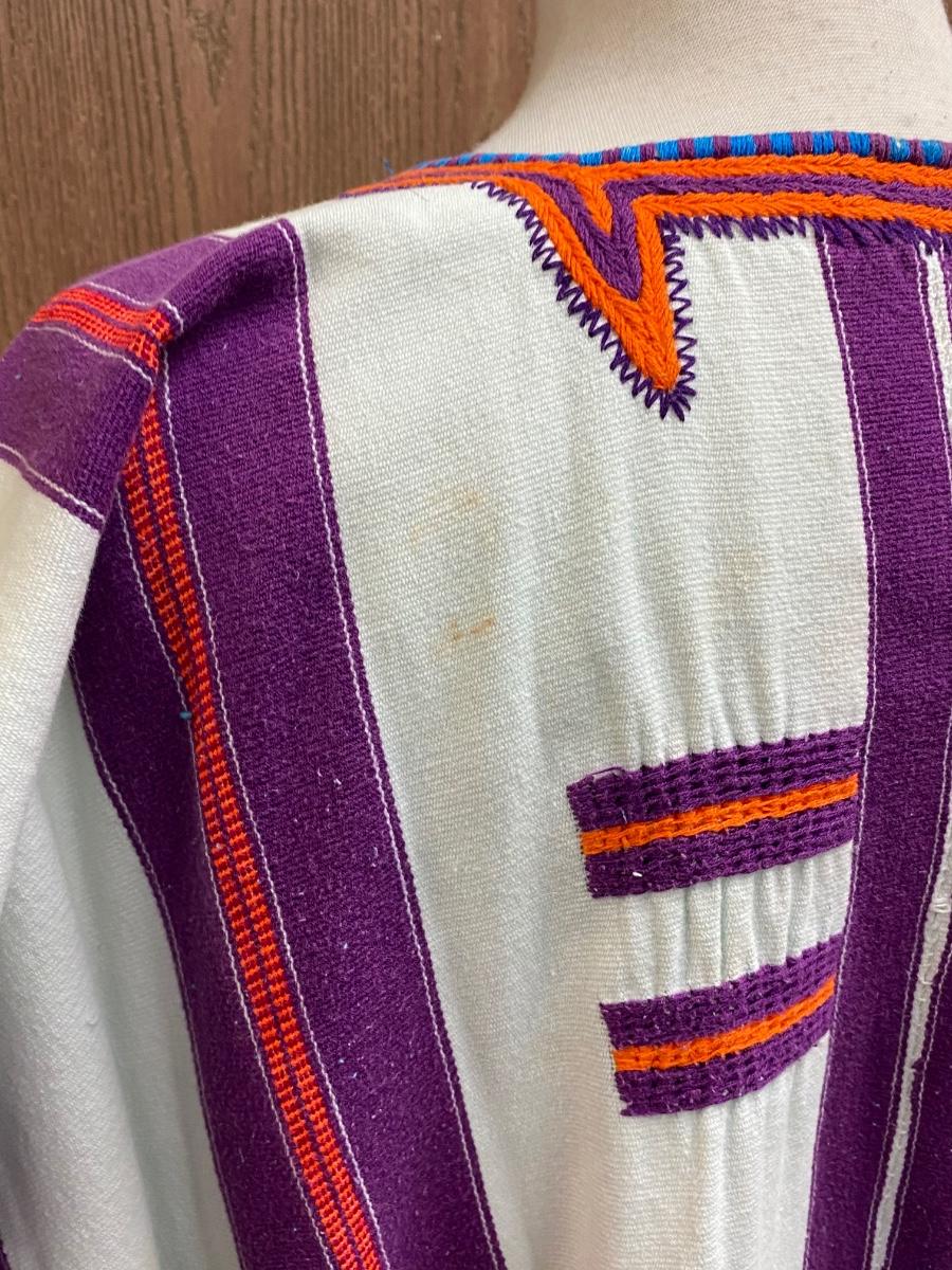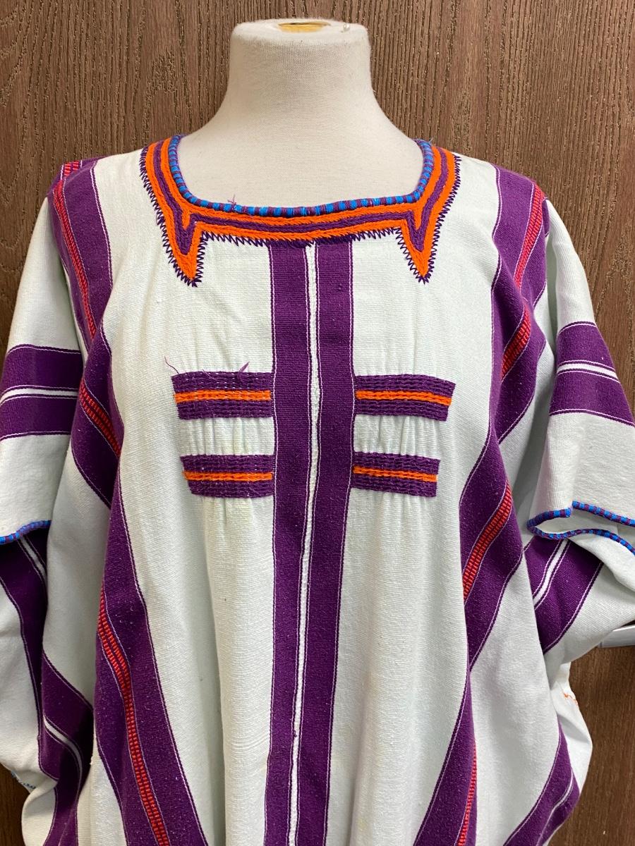 Purple and red bold stripe Mexican caftan dress. Below the knee length. In good condition, there is some faint discolor spots. Medium/large size.