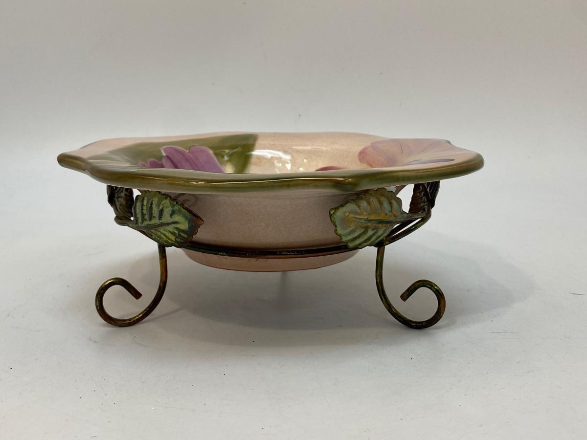 Purple Renoir Ambiance Pottery Soup Bowl Plate with Stand