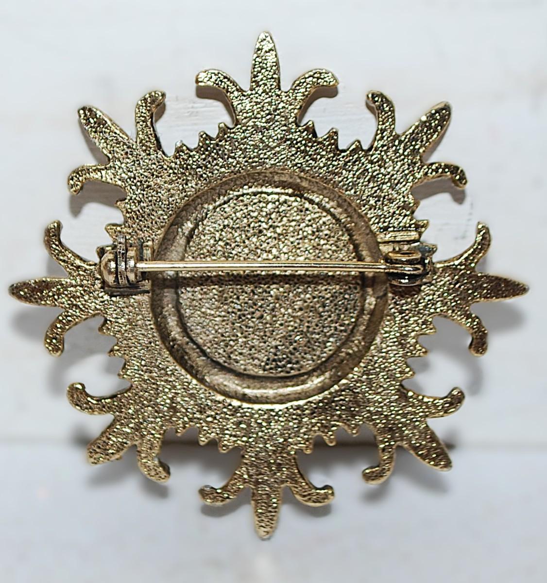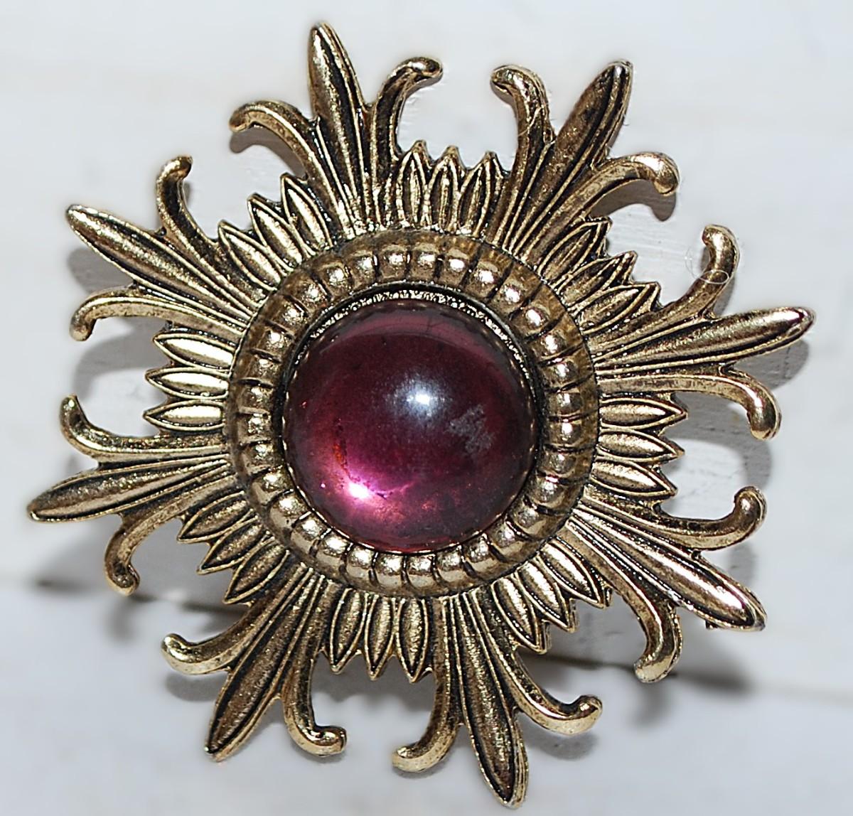 PURPLE Round Stone STARBURST BROOCH (1¾" Diam.) on a Gold Tone Setting