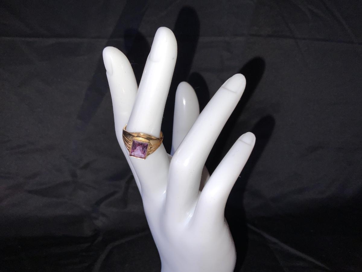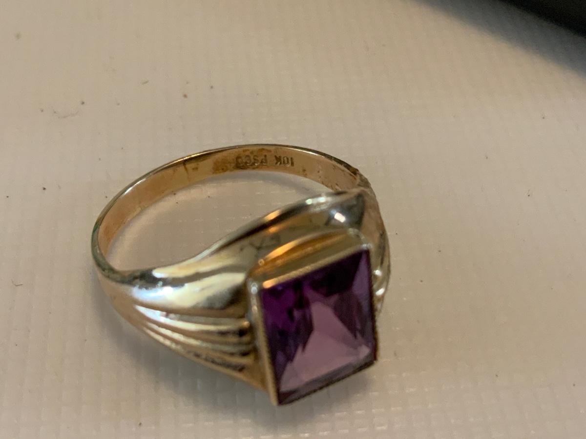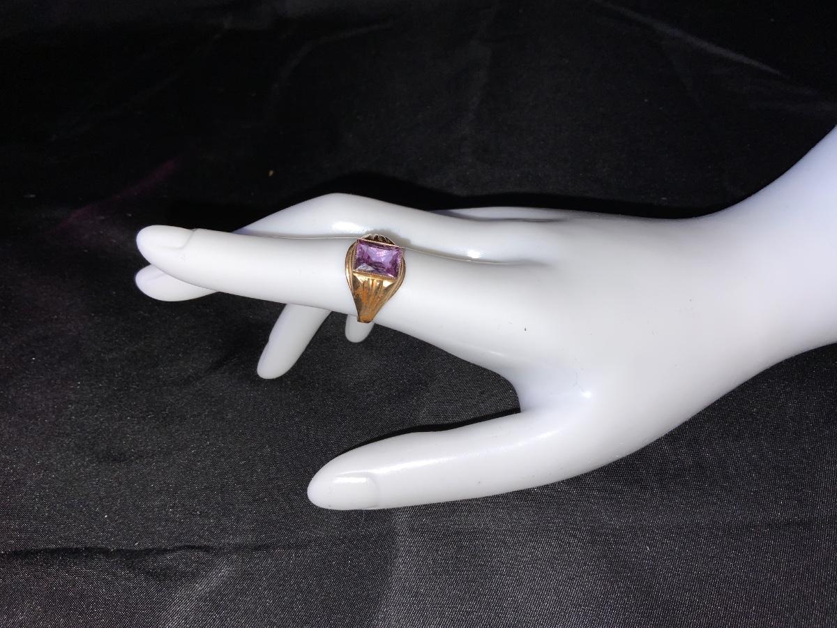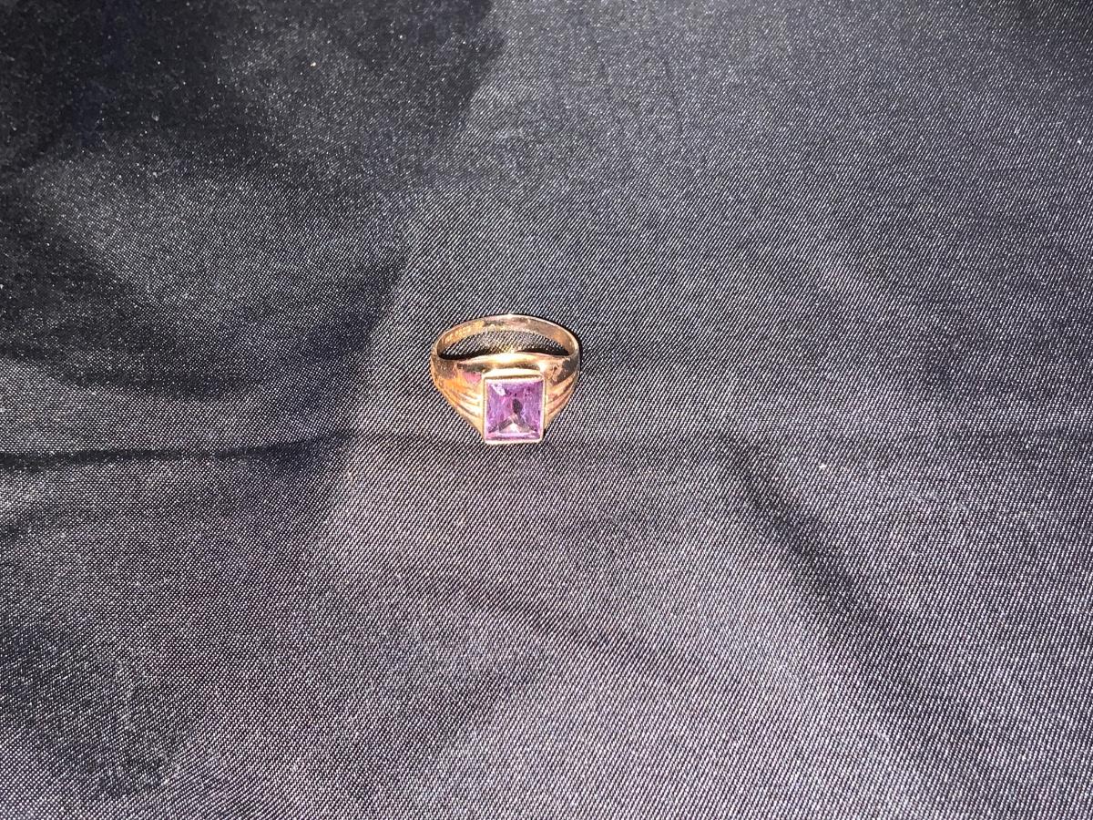 Beautiful Retro Purple ring size 7 with Yellow gold tone in color.