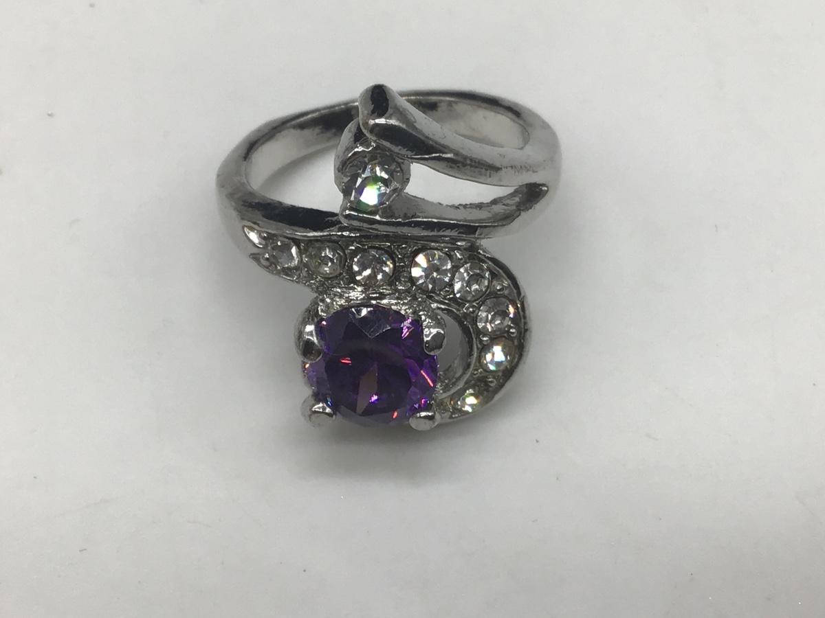 Purple Silver Tone cocktail Ring