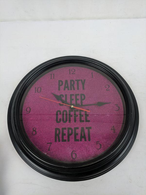 Purple Sparkly Clock 16" "Party Sleep Coffee Repeat"