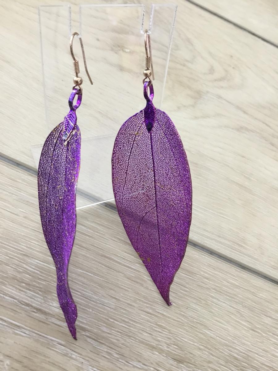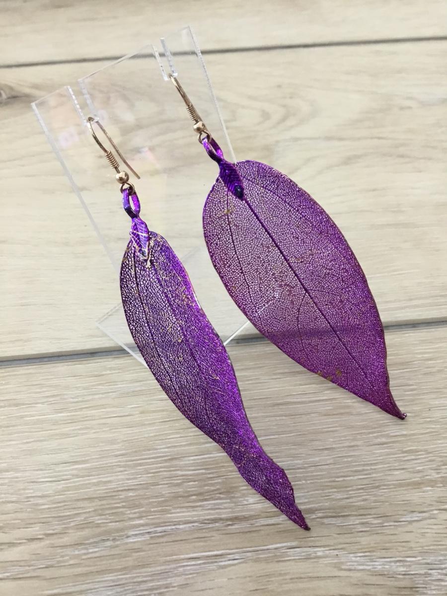 Purple statement feather earrings