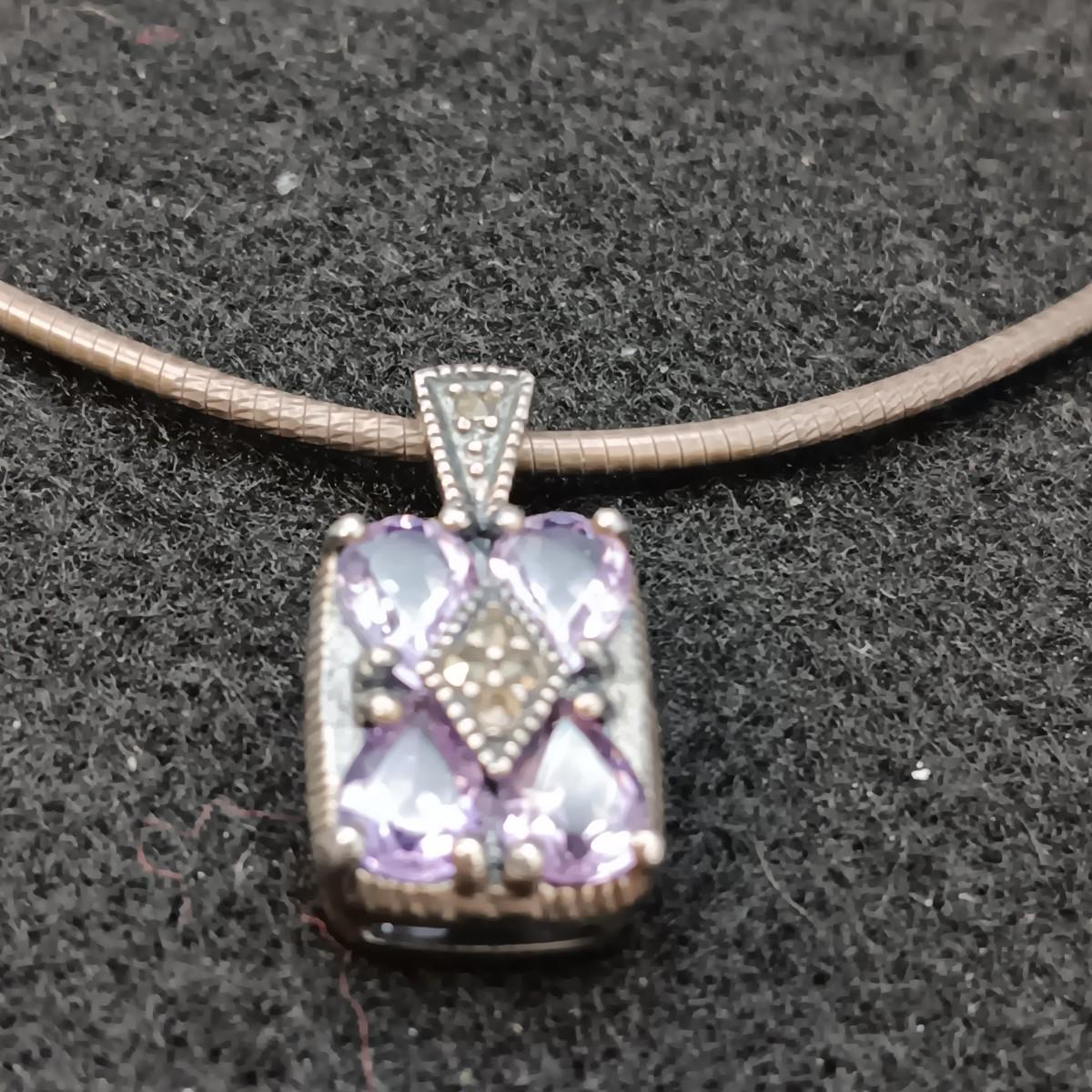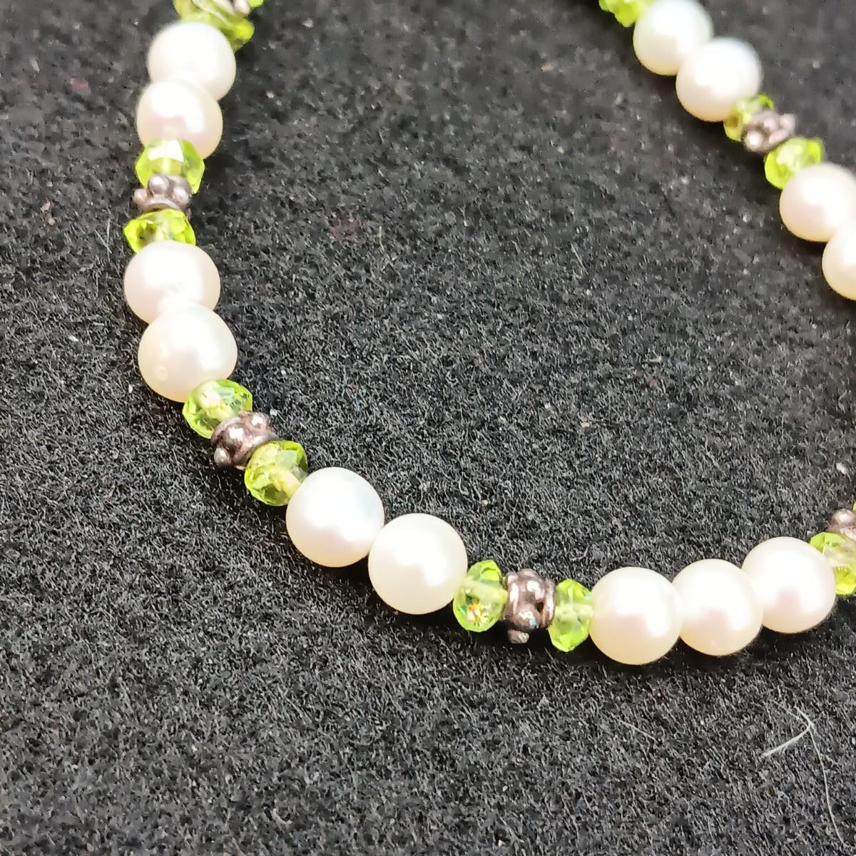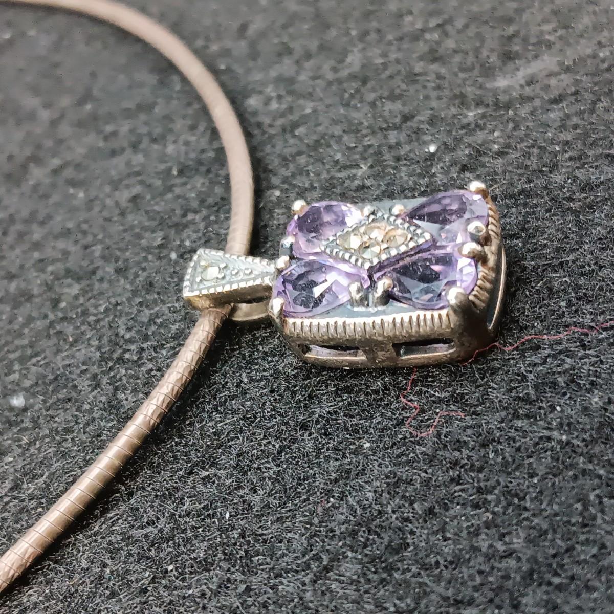 PURPLE STONES SET IN STERLING W/SILVER CHAIN PLUS PEARL & GLASS BEADED BRACELET