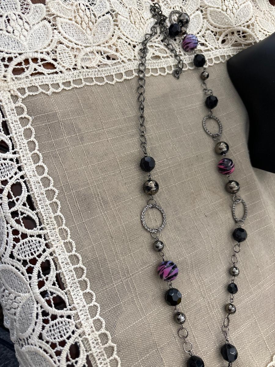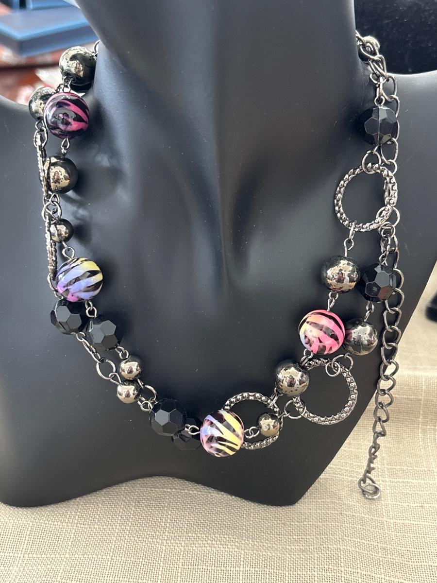 Purple zebra and black beaded necklace