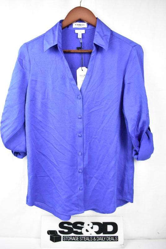 Purple/Blue Blouse by Express, Medium Portofino Slim Shirt - New