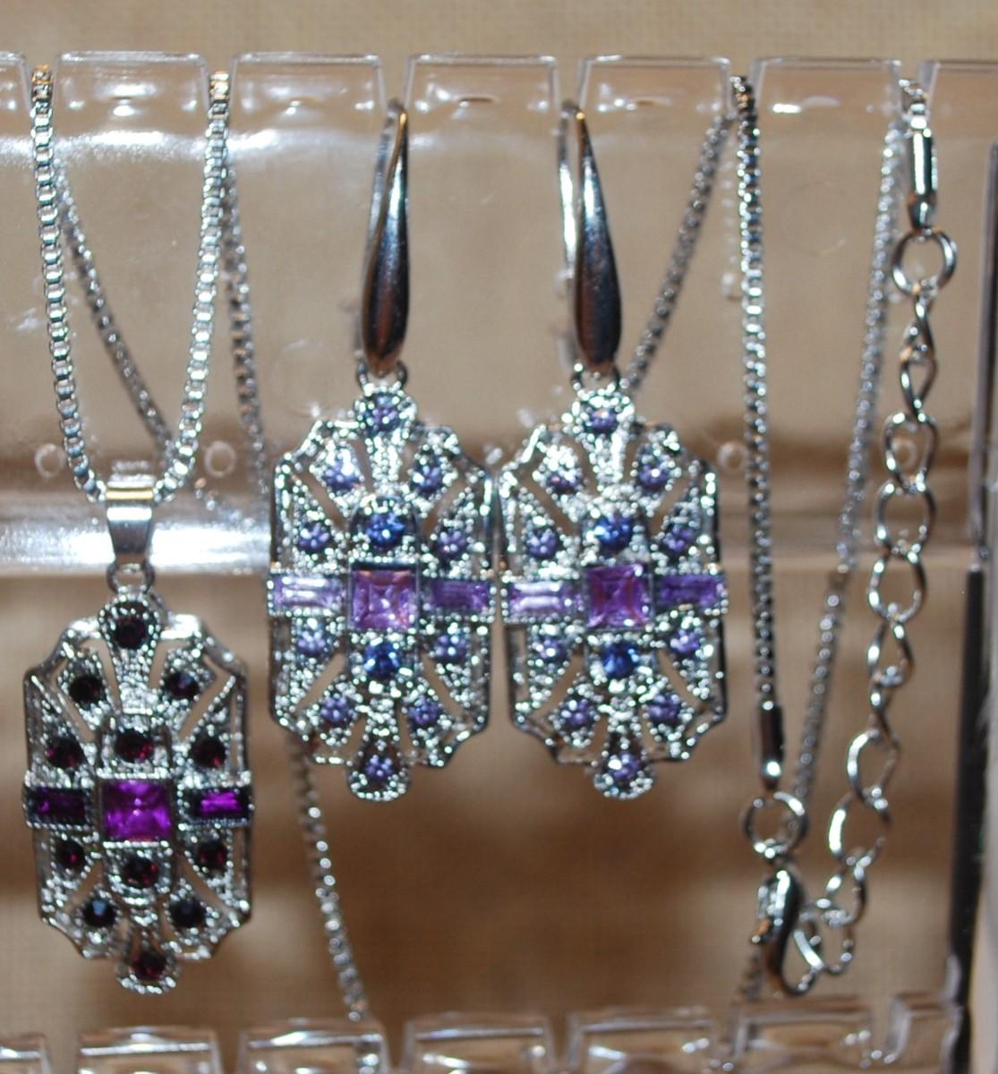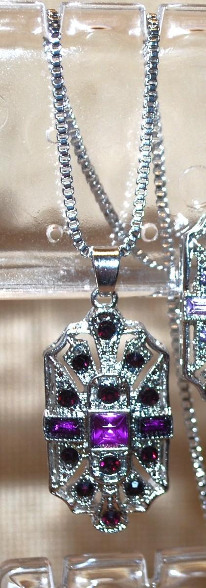 Purple/Silver JEWELRY SET Includes Earrings (1½" x ¾") with Wire Hook & PENDANT (1½" x ¾") on a Silver Tone Necklace Chain 18" L