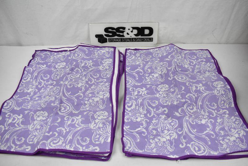 Purple/White Storage Bag Set of 2, Scroll Design Jumbo Size - New