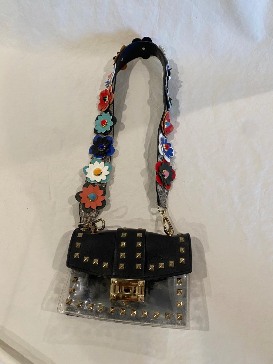 Purse - clear w/ leather flowers