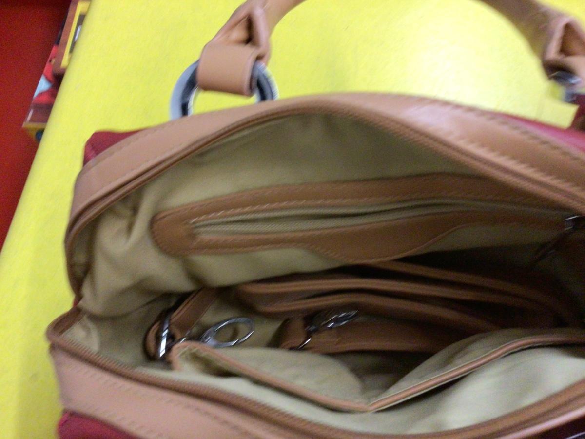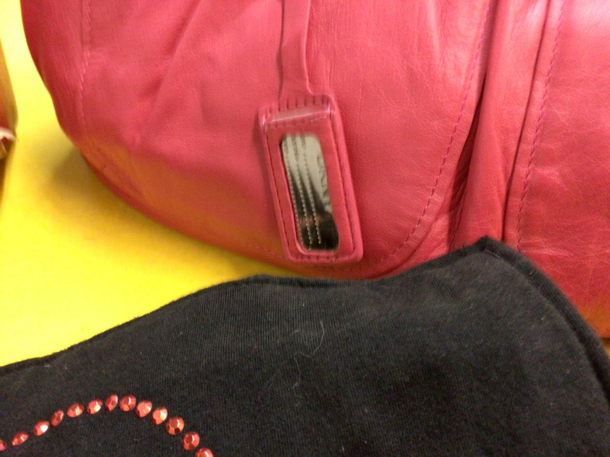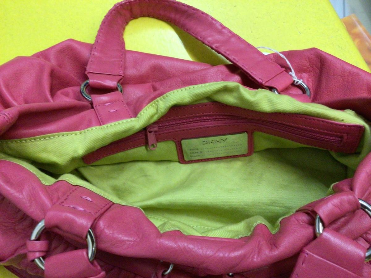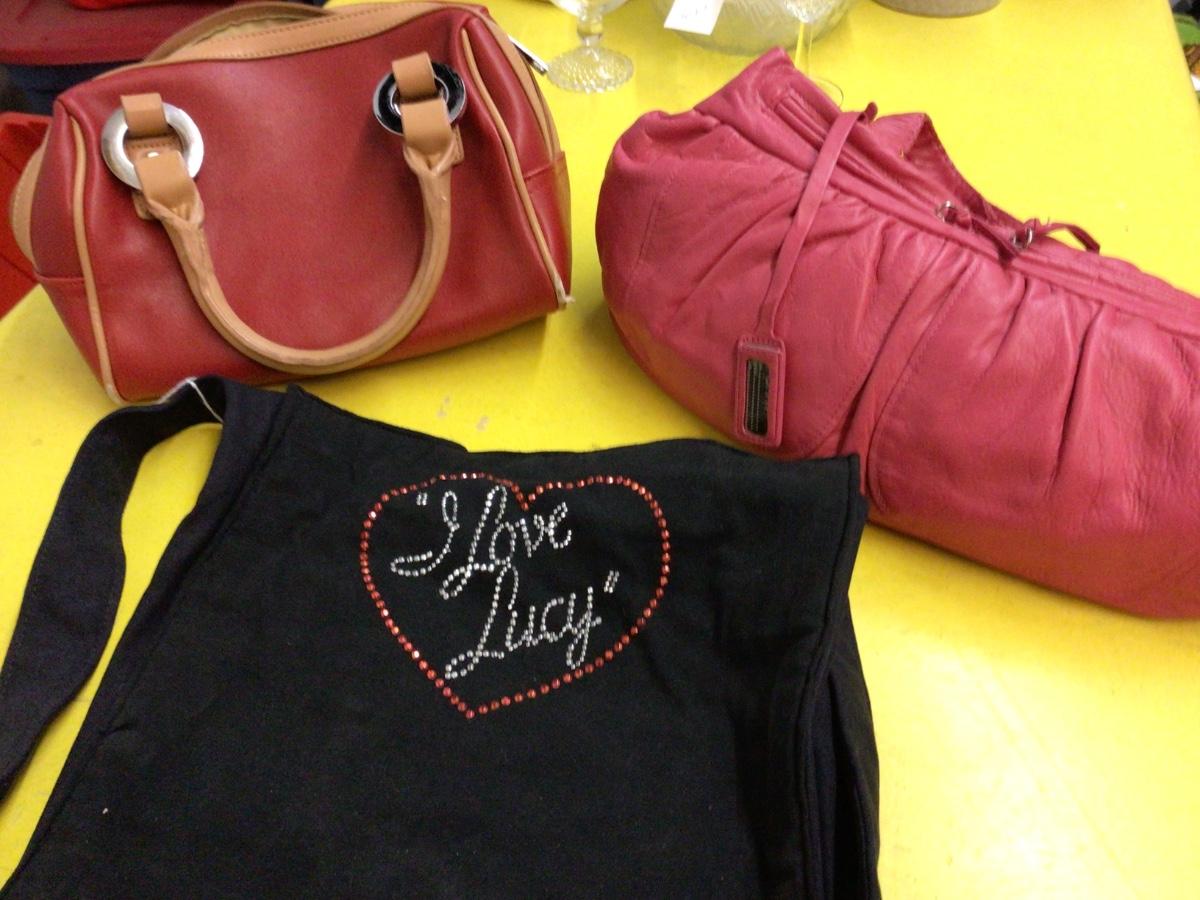 You get three nice purses, I Love Lucy, DKNY pink purse, and a very nice red and tan, purse.
